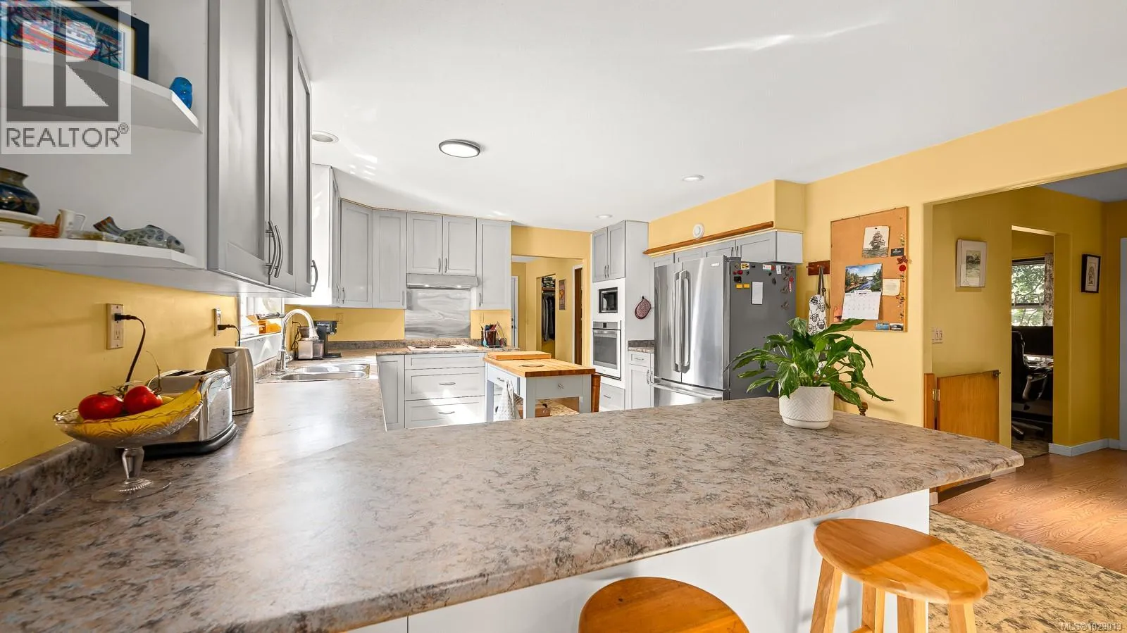 Rare offering! Great family home + detached shop on idyllic 4.82 acre property with its own pond provides private, natural oasis less than 10 minutes from downtown. The 2531sqft home features a bright, open plan kitchen & dining area warmed by woodstove & opens to south facing patio with established landscaping & veggie gardens. Cozy living room, den, bathroom, laundry