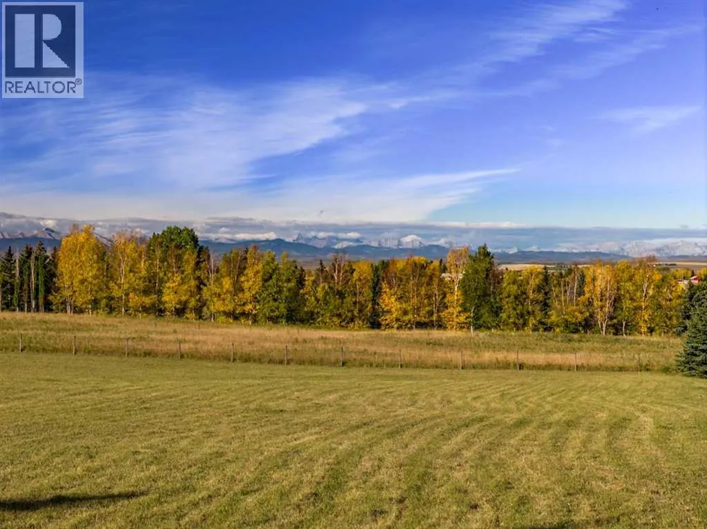 BUILD YOUR LEGACY: Build your masterpiece on this build-ready 4.99-acre Springbank parcel featuring breathtaking mountain vistas and a mature treed eastern and northern border for natural seclusion. This rare “bring your own builder” opportunity offers total freedom with NO time constraints and NO restrictive covenants. SITE READY: A drilled well is in place and services are at the property line.