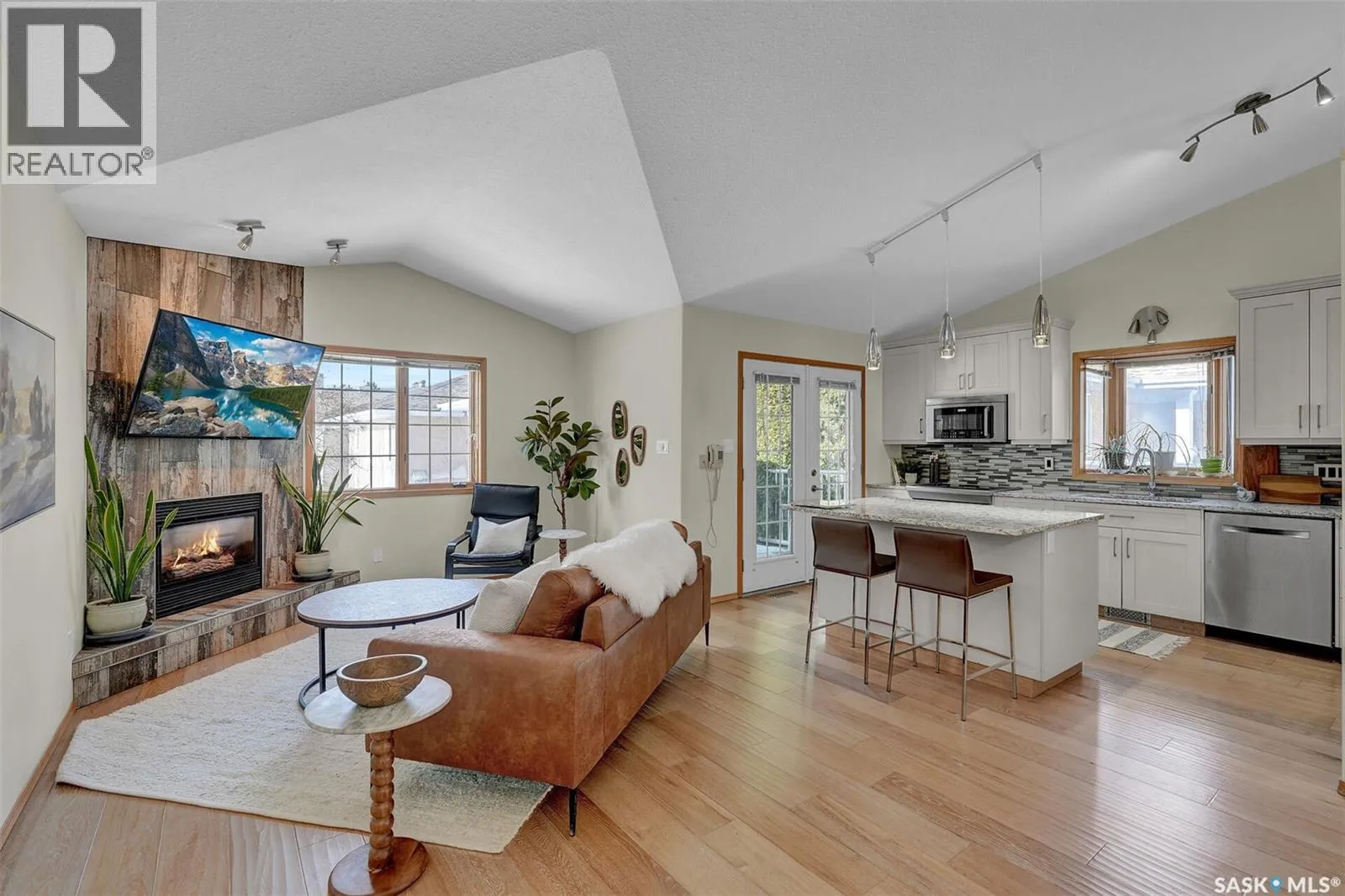 Welcome to sophisticated executive living in the prestigious gated community of Lakeshore Court. This timeless contemporary 3 bedroom plus office bungalow has been completely redesigned to offer a luxurious open concept layout with impressive vaulted ceilings and premium engineered oak hardwood flooring throughout the main level. The bright front living room welcomes you with a large picture window that fills