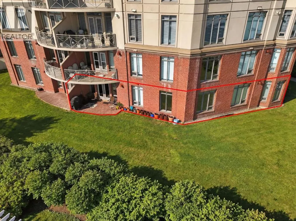 light through large windows overlooking beautifully landscaped greenspace. Inside, the home features hardwood flooring, freshly shampooed carpet, a spacious open living and dining area, a well-sized kitchen with stainless steel appliances and pantry, in-suite washer and dryer, central air cooling and a cozy gas fireplace. The versatile den is perfect for a home office or computer room. The thoughtful layout provides comfortable everyday living while offering plenty of room to entertain. The spacious primary bedroom features a large walk-in closet, and the same amazing views from the patio can also be enjoyed from the bedroom windows, creating a peaceful backdrop year-round. The 4-piece ensuite includes a standing shower as well as a walk-in jetted Jacuzzi tub. The second bedroom is conveniently located across from the full main bathroom. Step outside through the double French doors to your walkout patio with a natural gas line for your BBQ, where the quiet and peaceful setting feels more like stepping into your own private yard than a condo. Ground floor units with this type of outdoor access are rarely available in the building! Additional highlights include a Vacuflo system, secure titled underground heated parking and a large storage room located on the same level just steps from your front door, another rare and convenient feature. Residents enjoy the outstanding amenities of The Renaissance, including 24/7 concierge and security service, fitness facilities, social and recreation spaces such as the games and hobby room, guest suites, a movie theatre, library, car wash bay, and b eautifully maintained common areas inside and outside with gazebos and BBQ areas. The building also offers a garbage chute on each floor, no more wrestling garbage bags going down to the parkade! You also have secure, heated indoor access to North Hill Centre, which includes Safeway, Shoppers Drug Mart, restaurants, medical and dental offices, banks and more, making grocery shopping, dining, and daily errands effortless year-round. Just steps away is the LRT Station, providing quick access to downtown and the rest of the city. The Calgary Public Library, SAIT, and the Jubilee Auditorium are also just minutes away. A rare opportunity to enjoy spacious living, incredible views, and unbeatable inner-city convenience in one of Calgary’s most sought-after condo communities. (id:62650)