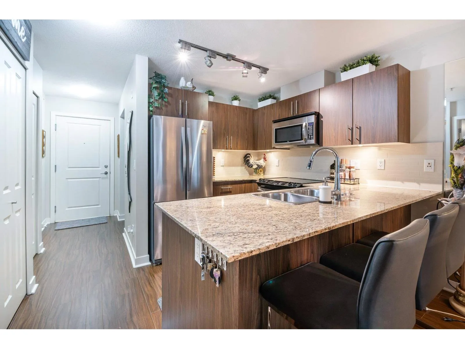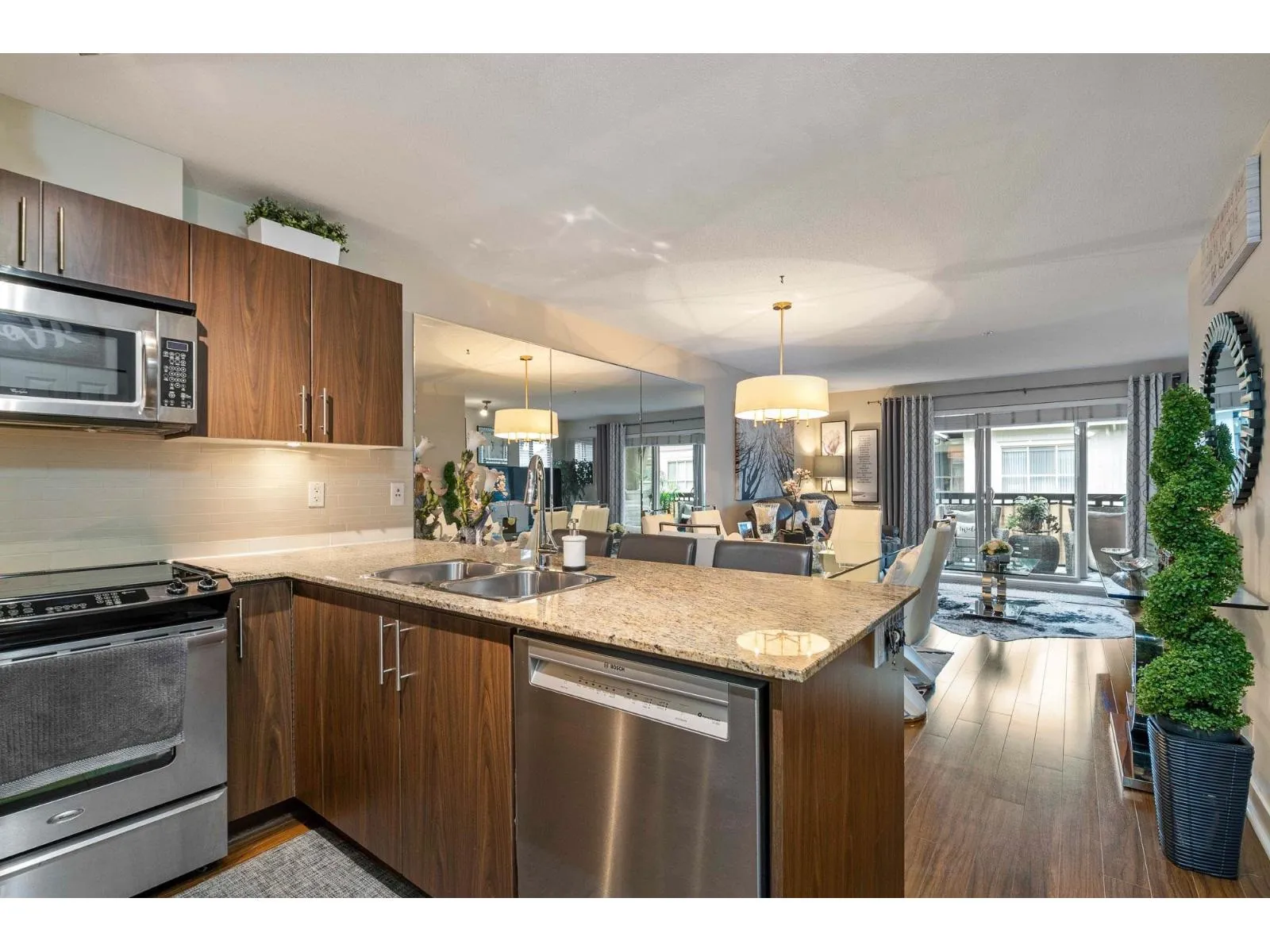 Welcome to Hawthorne! This top-floor, 1 bed and large den corner unit, offers 760 sq. ft. of thoughtfully designed living space. Bathed in natural light, this home features an open-concept layout, granite countertops, stainless steel appliances and ample workspace-perfect for both everyday living and entertaining. The spacious living area centers around a cozy fireplace, creating a warm and welcoming atmosphere.