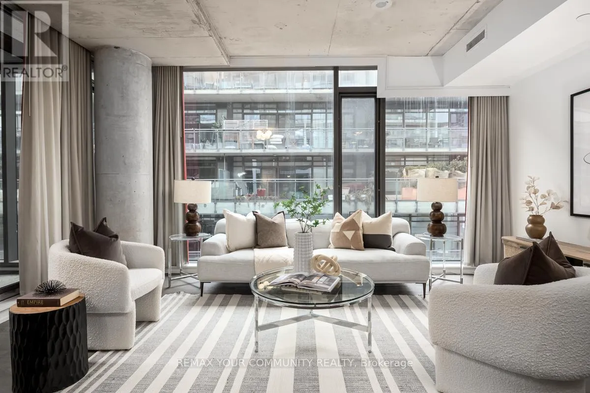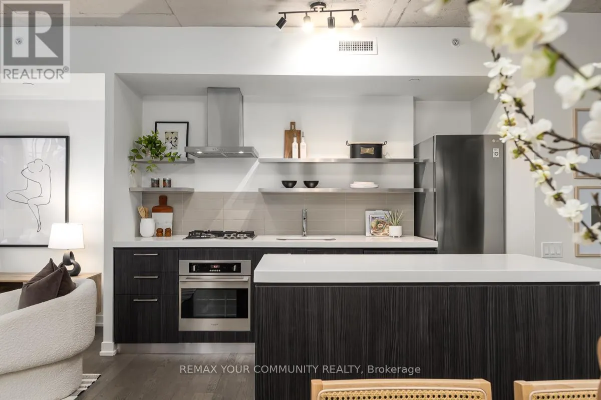 Welcome to Fashion House Lofts located in one of Toronto’s most vibrant and iconic neighbourhoods! This bright, freshly painted, open concept suite is 792 sq ft with exposed concrete ceilings and floor to ceiling windows! The modern kitchen has a gas cook-top, SS appliances and large centre island. A Chef’s dream! Double sliding doors open to the large 283 sq