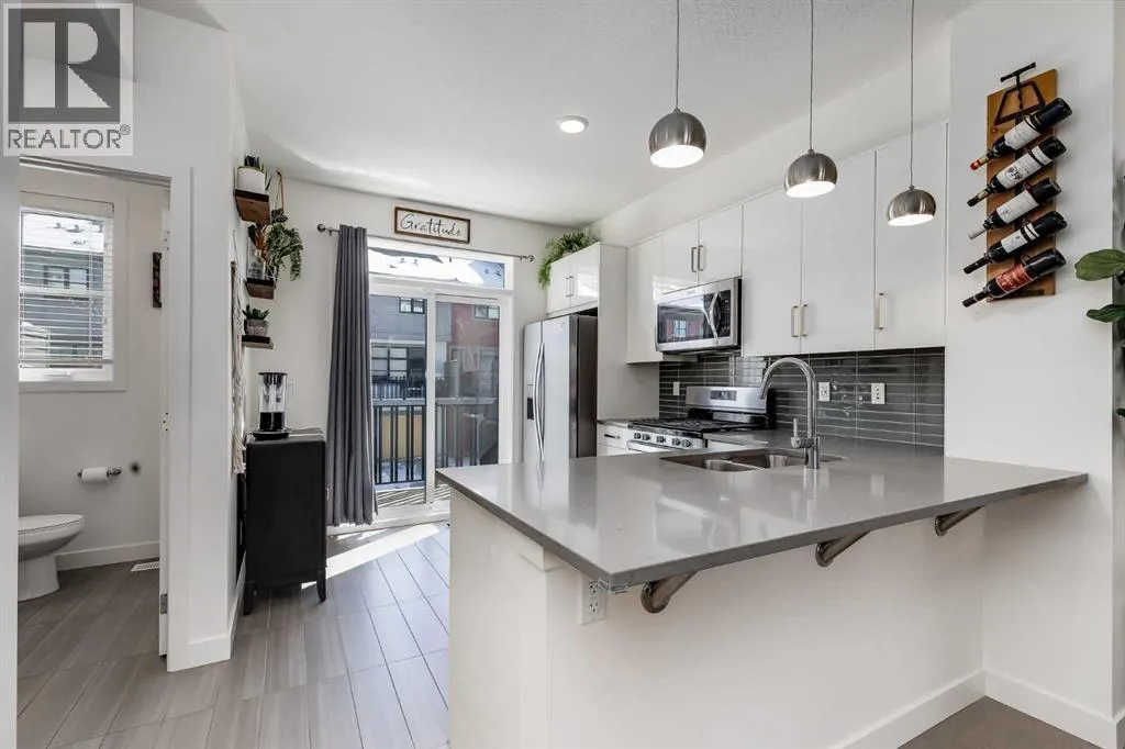 Welcome to this beautifully maintained 2 bedroom townhouse in the sought after community of Walden, a true example of pride of ownership. This bright and modern home features an open concept main floor with a stylish kitchen complete with sleek cabinetry, stainless steel appliances, a large island, and plenty of counter space, perfect for entertaining or everyday living. The dining