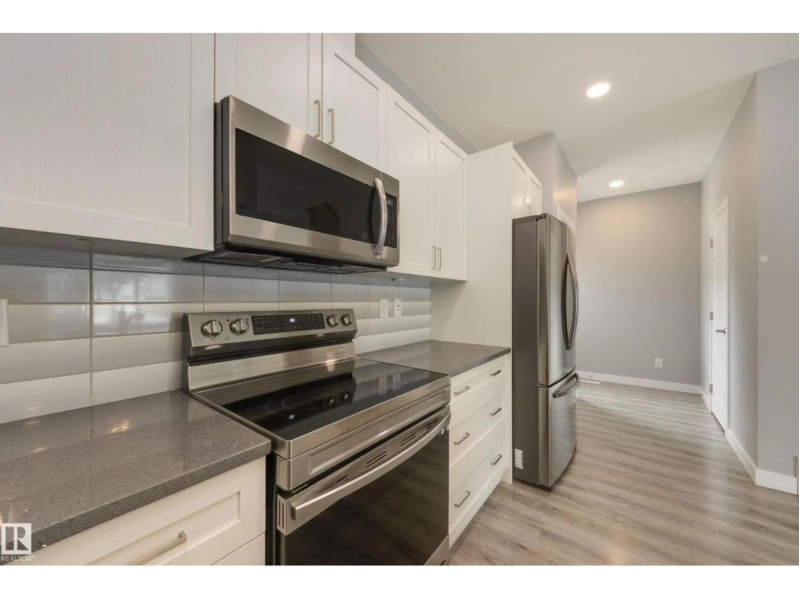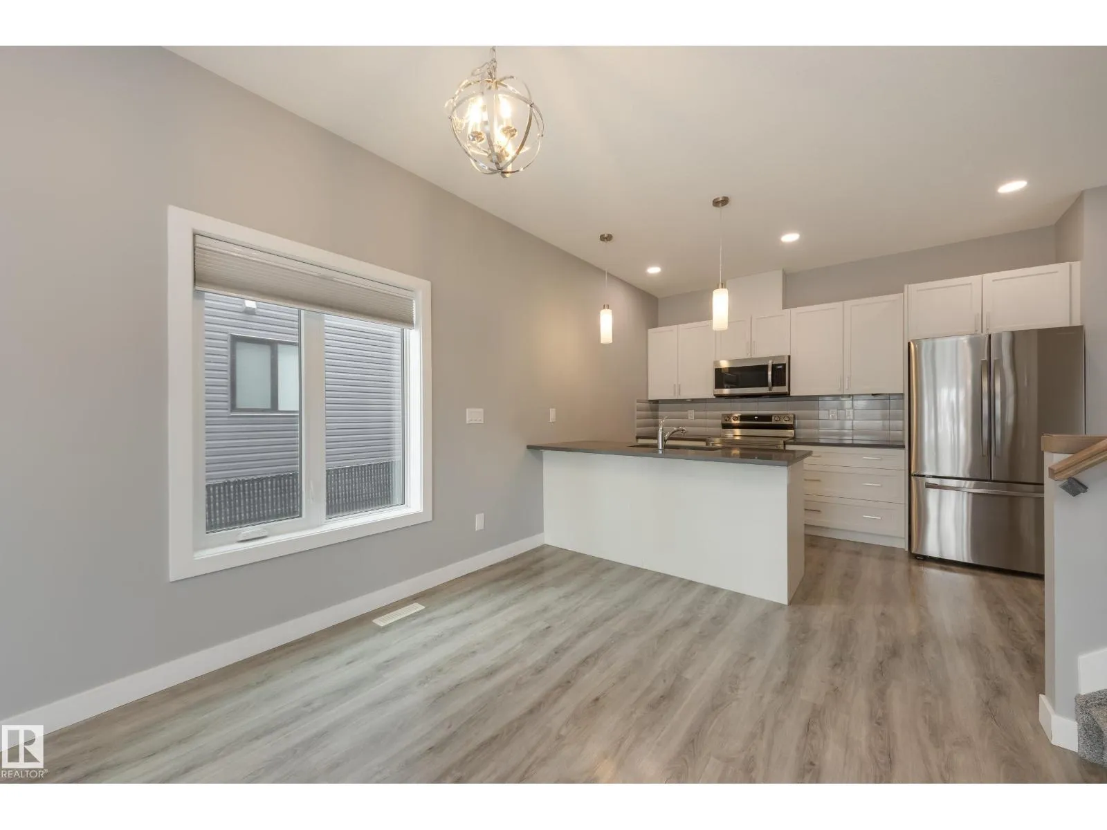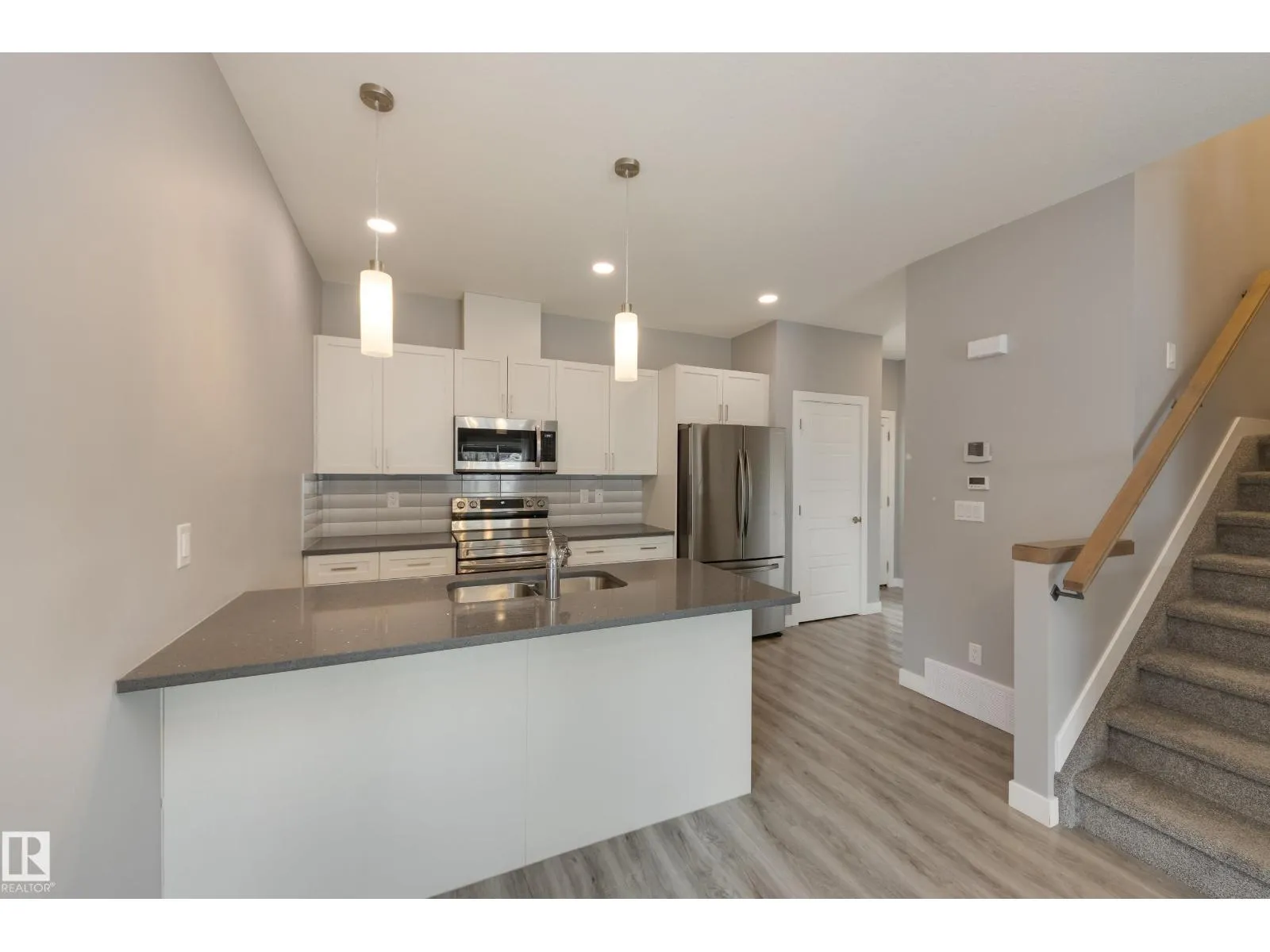 Front Half Duplex with Legal Suite & No Condo Fees! This well-designed 3 bed, 2.5 bath home offers just over 1,179 sq ft above grade with a functional open-concept layout perfect for modern living. The main floor features 9’ ceilings, durable vinyl plank flooring, and triple-pane energy-efficient windows that fill the home with natural light. The kitchen showcases quartz countertops,