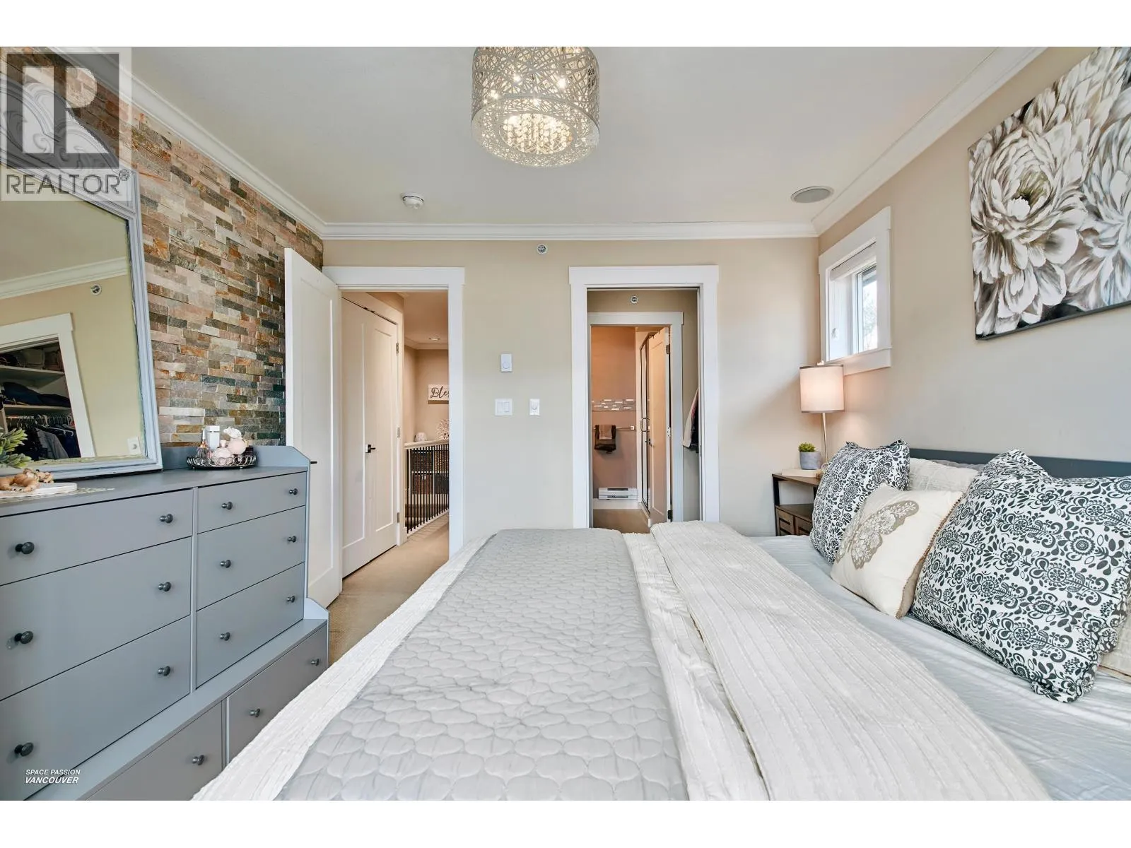 END UNIT in sought-after Albion Station! This 3 bed, 2.5 bath home offers a private fenced yard backing onto Albion Elementary and a bright south-facing patio with a custom glass awning. The open-concept main floor features an oversized island, quartz countertops, stainless steel appliances, and dark wood cabinetry. Upgrades include modern lighting, new wood flooring on the main stairs, in-ceiling
