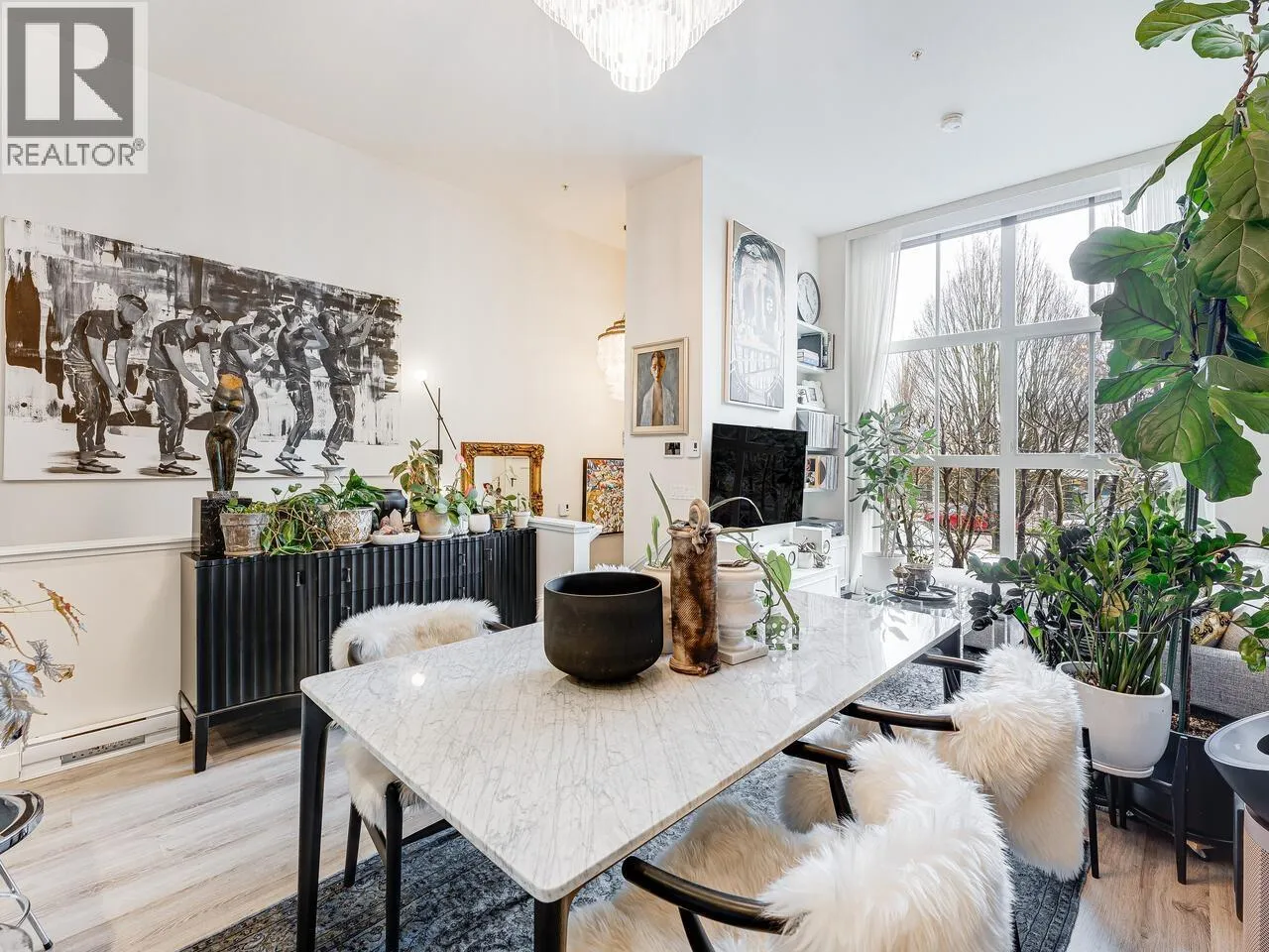 Immaculate boutique 2 bed 2 bath concrete townhome with 11 to 14 ft ceilings and floor to ceiling windows overlooking Trout Lake Park & Trout Lake Community Centre. Ideally located and just minutes to vibrant cafés, dining, and shops of Commercial Drive. Short walk to Skytrain. This bright open concept home is designed for comfortable living and entertaining, featuring quartz