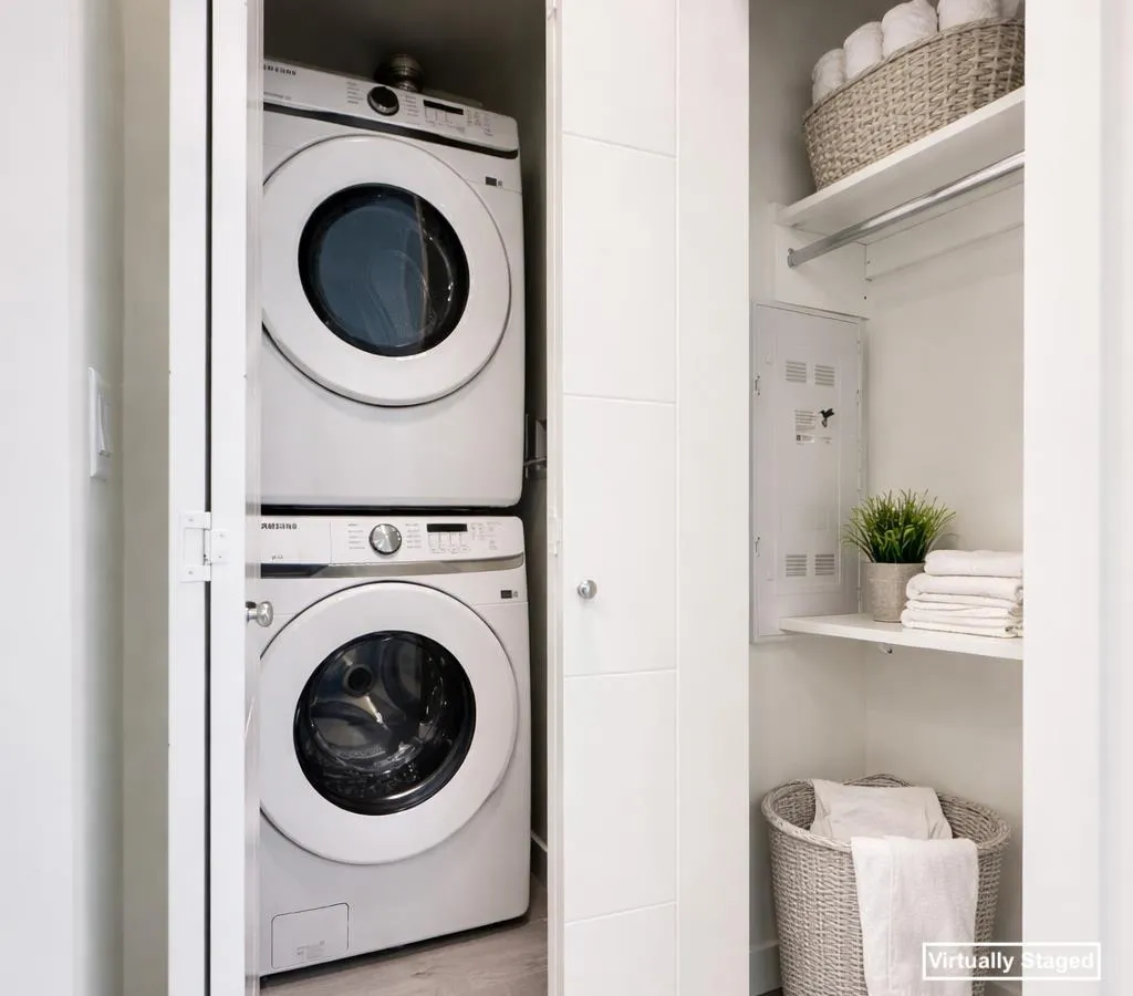 Welcome to Canvas on Brydon Crescent, where energy efficiency meets contemporary design. Enjoy high-quality laminate flooring throughout the living, kitchen, and dining areas, complemented by modern flat panel casings around windows and doors. The 9-foot ceilings in all living areas and bedrooms enhance the sense of space. Dedicated air conditioning plugs in all living rooms and master bedrooms add convenience.