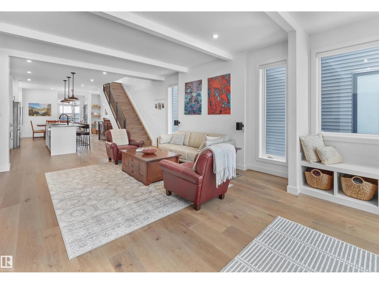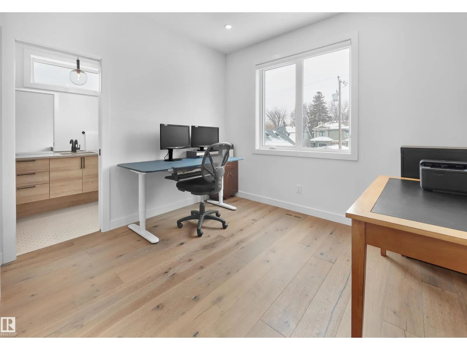 Modern farmhouse elegance meets a prime park-side setting in this air-conditioned ACCENT INFILL home facing Westmount Park. The bright open-concept layout showcases massive windows, 9’ ceilings, and 1,885 sq ft of stylish living with 3 bedrooms and 2.5 baths. The gourmet kitchen features a gas cooktop, wall oven, oversized island, built-ins, and a wine fridge—perfect for entertaining—while oak hardwood and