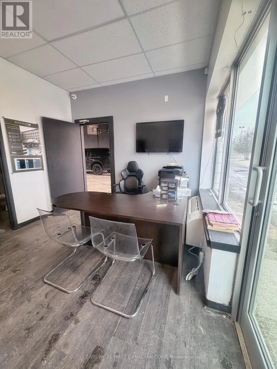 Well-established car detailing, tinting, and wrap service business for sale, located at 1982 Dundas St. This turnkey opportunity is ideal for automotive professionals or entrepreneurs looking to step into a fully equipped operation.The space offers approximately 2,366 sq ft and features four bay doors (two front and two rear), providing efficient workflow and convenient drive-through access. The unit includes a