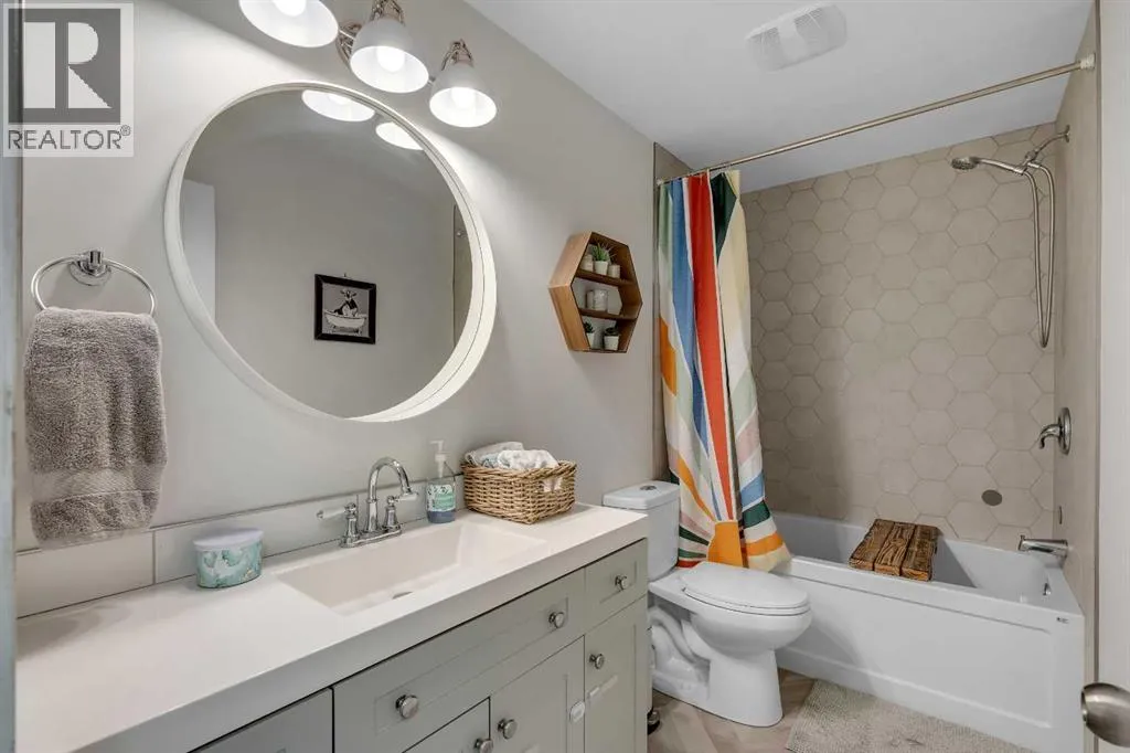 windows allow natural light to pour into the inviting living room throughout the day. A wood burning fireplace creates a cozy focal point that naturally draws family and friends together on cooler evenings. Designer lighting highlights the adjacent dining space where open sightlines support both casual meals and relaxed entertaining. Neutral cabinetry keeps the kitchen bright and functional while a window above the sink brings in natural light during daily routines. Glass tile backsplash detailing adds a modern touch while the efficient layout keeps cooking and prep comfortably organized. Privacy and comfort continue upstairs where the primary retreat features a walk-in closet along with its own updated powder room, eliminating late night trips down the hallway. Two additional bedrooms offer flexible space for family members, guests or a dedicated home office while a beautifully renovated 4-piece bathroom serves the upper level. Movie nights and casual gatherings find their place in the spacious basement recreation room where a wood burning stove adds warmth and character. A full 3-piece bathroom enhances convenience while generous storage helps keep seasonal items neatly organized. Outdoor living extends to the distinctive herringbone deck, an inviting place to barbeque, relax or host summer get togethers. The fully fenced yard space allows kids and pets to play freely while the heated double detached garage provides secure parking and additional storage. Additional upgrades include a new furnace and electrical panel in 2023 and a new hot water tank in 2020 . Exceptional walkability connects this home to Deer Run School, transit, the community centre and a nearby off-leash dog park. Nature lovers will appreciate the close proximity to Fish Creek Park where scenic pathways wind through one of Calgary’s most treasured natural landscapes. Annie’s Café within the park offers a casual stop for coffee, lunch or ice cream while The Bow Valley Ranche Restaurant creates a memorable setting for special evenings out. Summer days are easily spent at nearby Sikome Lake, only a 5 minute drive away, where sandy beaches and calm water create the perfect place to unwind. Truly an outstanding location for this beautiful, move-in ready home! (id:62650)