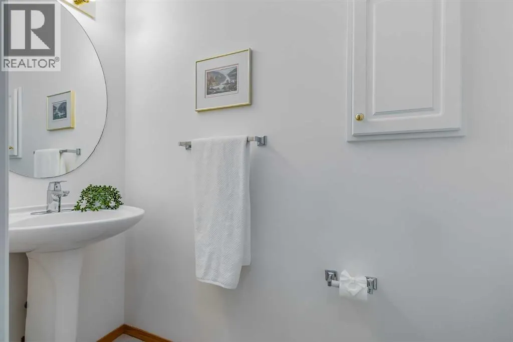 living space, a walk-out lower level, and a single attached garage, this property provides a comfortable and low-maintenance lifestyle. The main floor is designed for everyday living and easy entertaining. A welcoming entry leads to a versatile den, ideal for a home office, quiet sitting area, or additional bedroom. The open-concept kitchen, dining, and living areas are filled with natural light from large windows. The kitchen features white cabinetry, matching appliances, a corner pantry, and generous counter and storage space. The dining area accommodates larger gatherings and connects seamlessly to the living room, where a three-sided fireplace creates a shared focal point between the two spaces. From the living room, step onto the upper deck to enjoy sweeping views, including downtown in the distance, as well as the surrounding landscape. The primary bedroom is well proportioned and includes a walk-in closet and a four-piece ensuite. A two-piece powder room and a convenient main floor laundry room add to the functionality of this level. The walk-out basement extends the living space and is bright and welcoming, with direct access to a covered patio and grassy outdoor area. This level includes a large recreation room, a bedroom, a four-piece bathroom, and ample storage, offering flexibility for guests, hobbies, or additional living space. This pet-friendly complex allows dogs and cats with board approval. Monthly maintenance fees include grass cutting and snow removal, supporting a well-managed community with low condo fees. Scenic Acres is a well-established northwest neighbourhoo d known for its access to amenities, schools, and outdoor recreation. Community pathways connect directly to the Bow River system, with nearby access to Baker Park and Bowness Park. Crowfoot Crossing offers a wide range of shops, services, restaurants, the YMCA, and the Crowfoot Library, while the Crowfoot LRT station and Park and Ride provide convenient transit options. Schools, parks, an off-leash dog area, and the community centre are all close by. With easy access to Crowchild Trail and Stoney Trail, commuting across the city or heading west toward the Rocky Mountains is straightforward, and YYC airport is within a reasonable drive. Take advantage of your opportunity to see this incredible property in person, book your showing today! Be sure to check out the floor plans and 3D tour for a closer look before your visit. (id:62650)