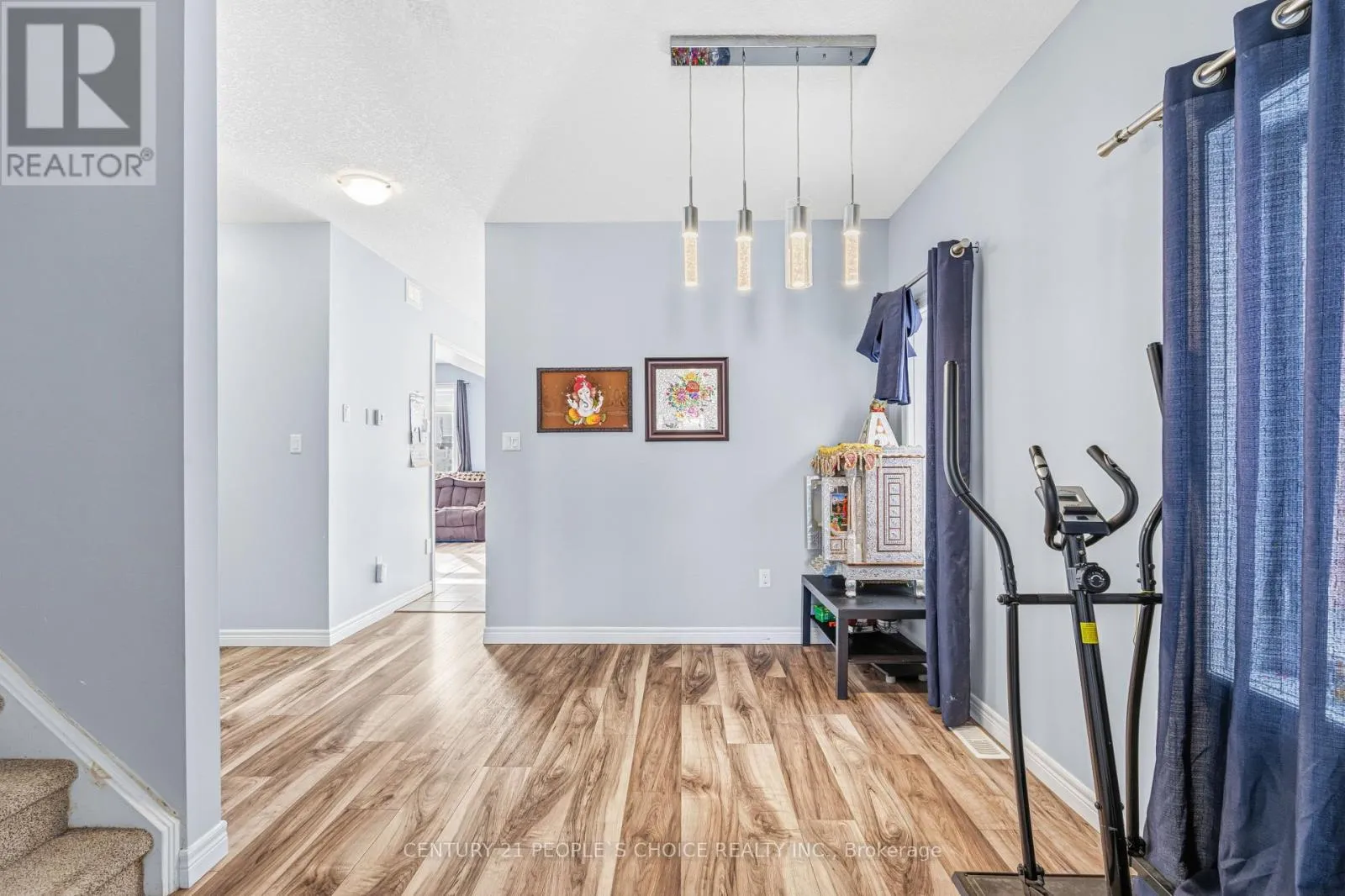 This exquisite two-story family residence, located at 72 Grand Flats Trail in Lackner Woods at Explorers, features four plus two bedrooms. The property immediately impresses with its distinguished stone pillars and inviting covered porch. Upon entering, the bright foyer and nine-foot ceilings establish an open and expansive atmosphere throughout the carpet-free main floor. This level includes a formal dining room,