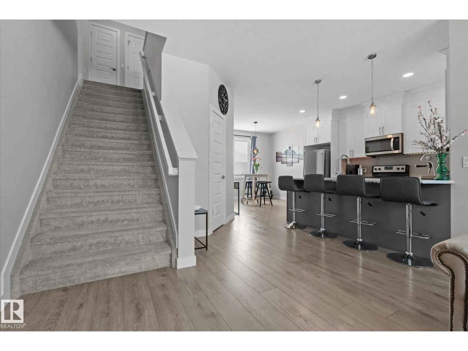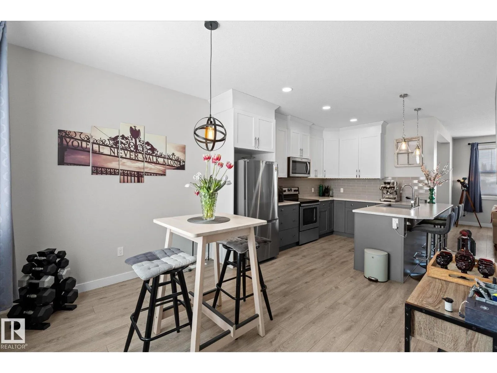 2018-built 2-storey with LEGAL BASEMENT SUITE, central air conditioning and detached TANDEM double garage (12’ x 40’) in Harvest Ridge. Just a short walk to Copperhaven School and SPA High School. This home offers 1,520 sq ft (plus full basement) with an open-concept layout, spacious foyer, vinyl plank flooring, large east and west-facing windows, 2-pc powder room, upgraded and efficient