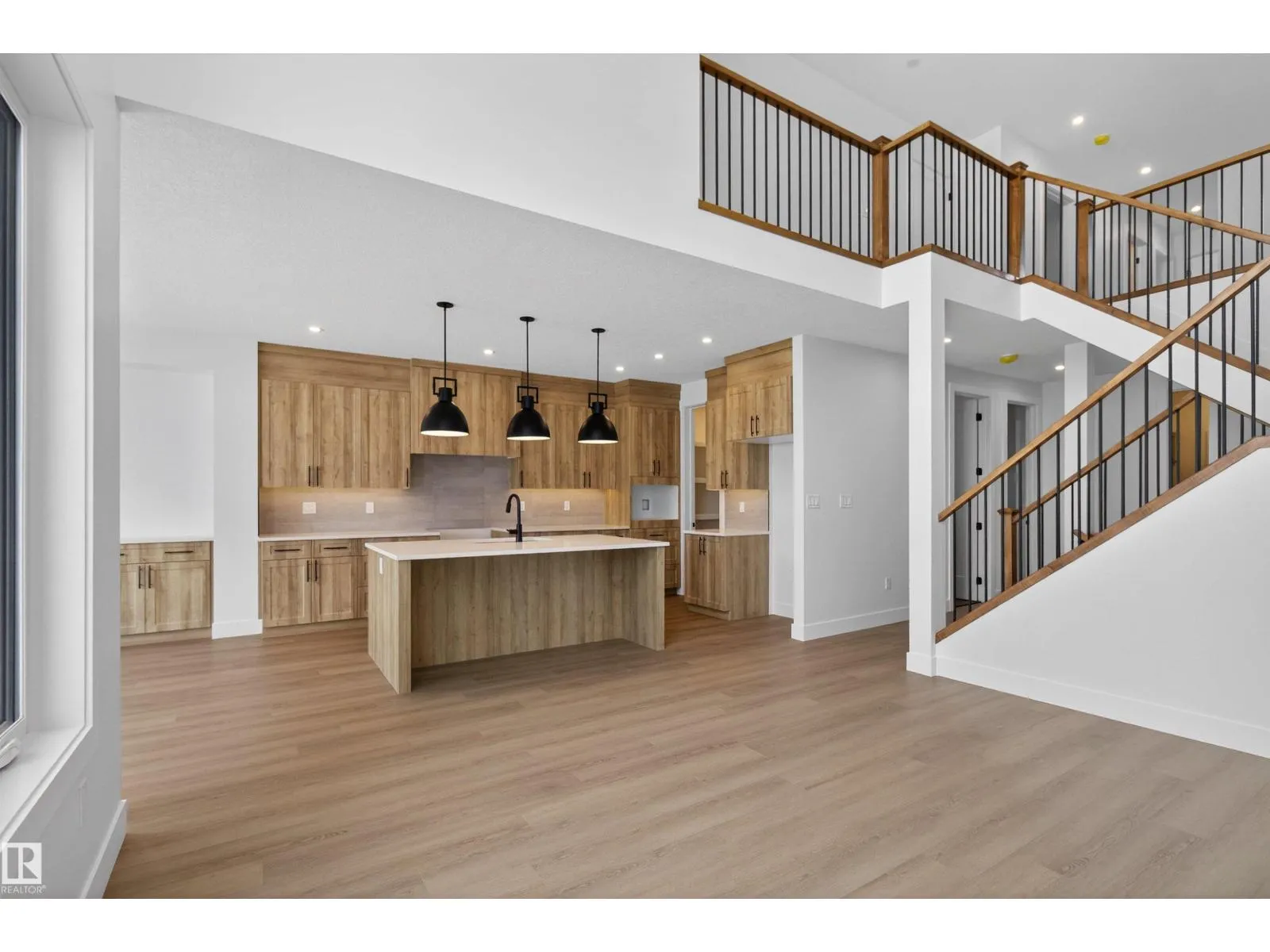 BACKING ONTO POND! This beautiful custom-built WALKOUT HOME is located in the popular southwest community of Glenridding! Close to schools, parks, shopping and major amenities. Offering a functional, modern and open floor plan! Generous entry way, soaring open-to-above ceilings in the living room, plus a stunning feature wall with electric fireplace. Gorgeous chef’s kitchen with built-in pantry. An abundance of