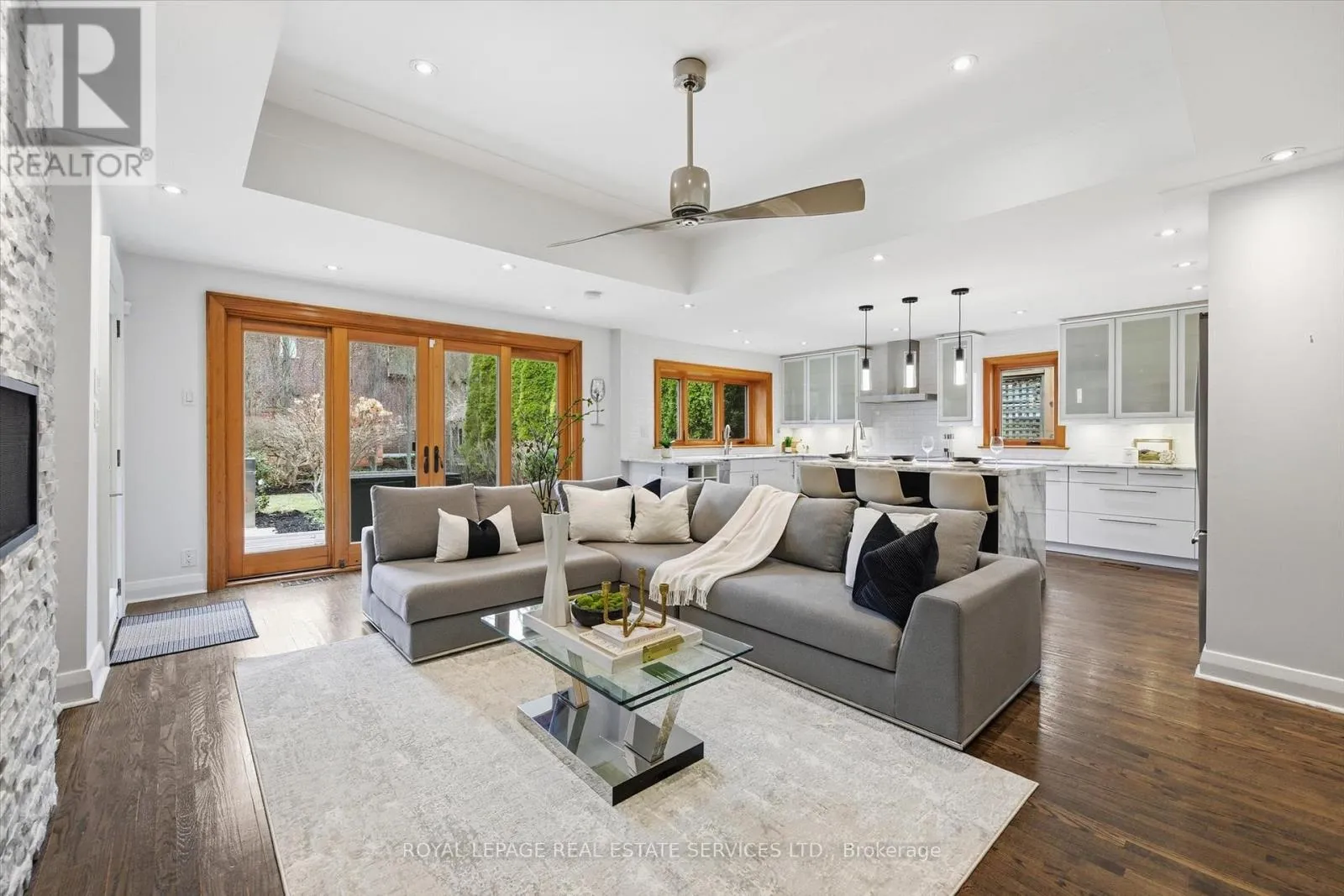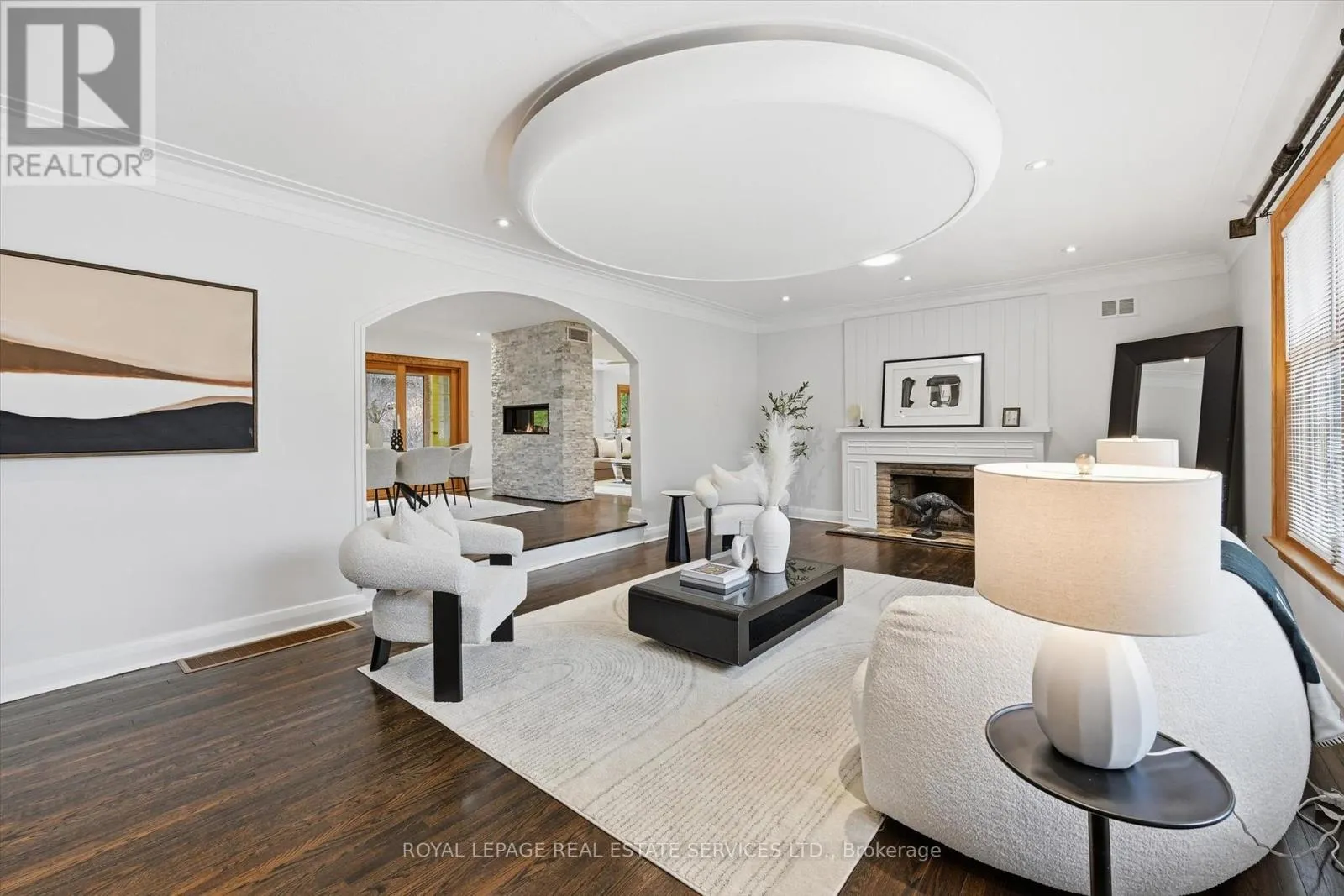 ** This updated, custom ranch-style bungalow in one of Ancaster’s most desirable areas offers over 2,000 sf of elegant living with hardwood throughout. Features 3 spacious bedrooms, a living rm w/cozy wood-burning fireplace, dining & family rm with striking double-sided Valor induction gas fireplace framed by marble surround, a charming 3-season sunroom, and abundant light from eight tubular sunlights, pot