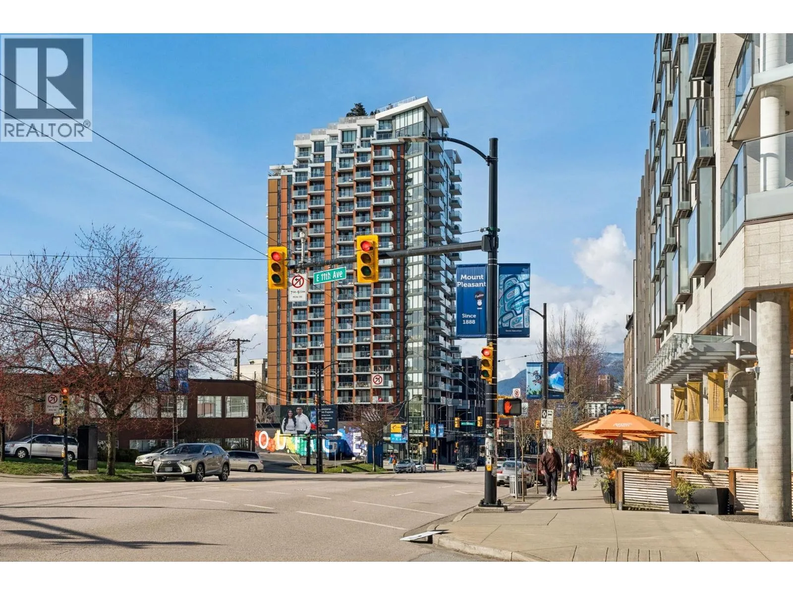 Discover this NW corner 1-bedroom in Mount Pleasant, filled with natural light and a spacious, open layout. The modern kitchen with stainless steel appliances and gas range opens seamlessly to the living space and covered patio with city and mountain views. The bedroom and bathroom are tucked away for privacy, with in-suite laundry and extra storage. Located in the