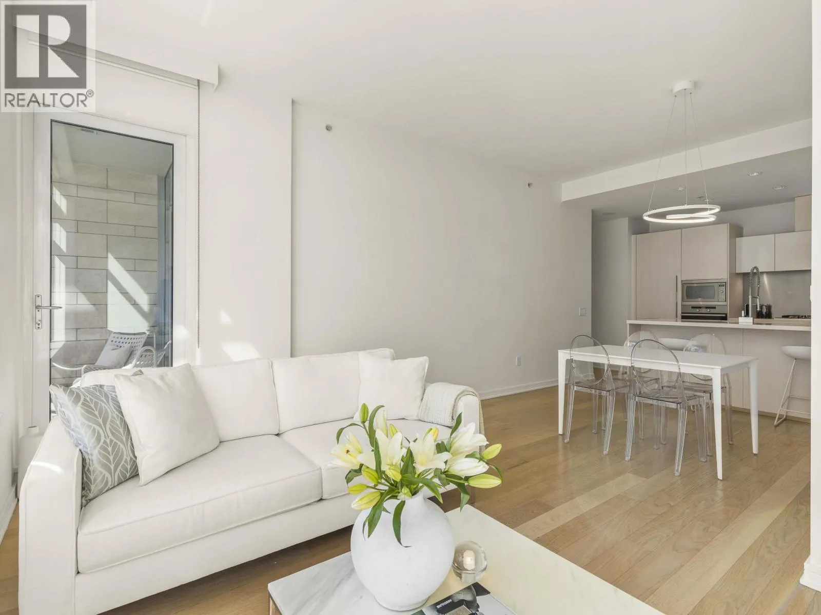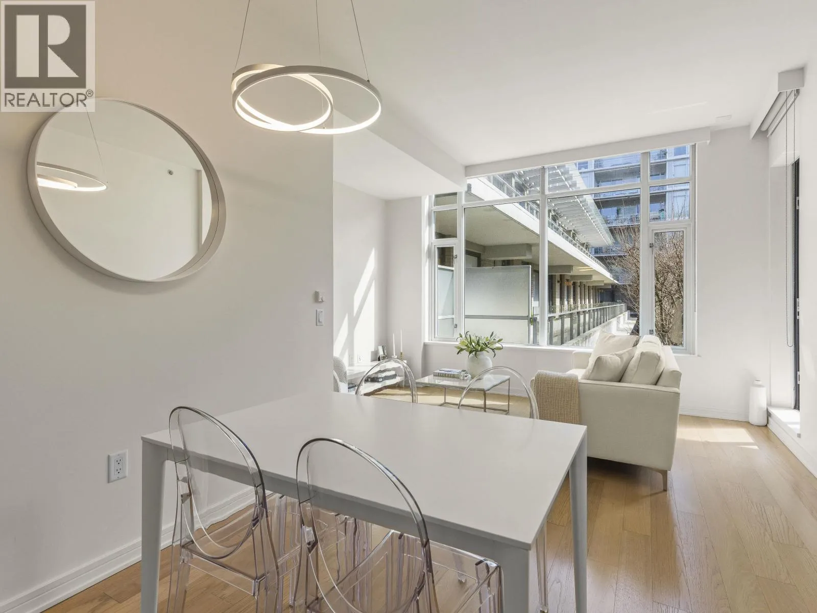 Exceptional East-facing residence in Kayak, a coveted LEED Platinum building in the heart of False Creek. Bathed in natural light through floor-to-ceiling windows & enhanced by soaring 9´5″ ceilings, this home offers a seamless blend of comfort & refined design. Overlooking a peaceful, tree-lined courtyard & seamless indoor-outdoor flow with a covered patio off both the living and bedroom