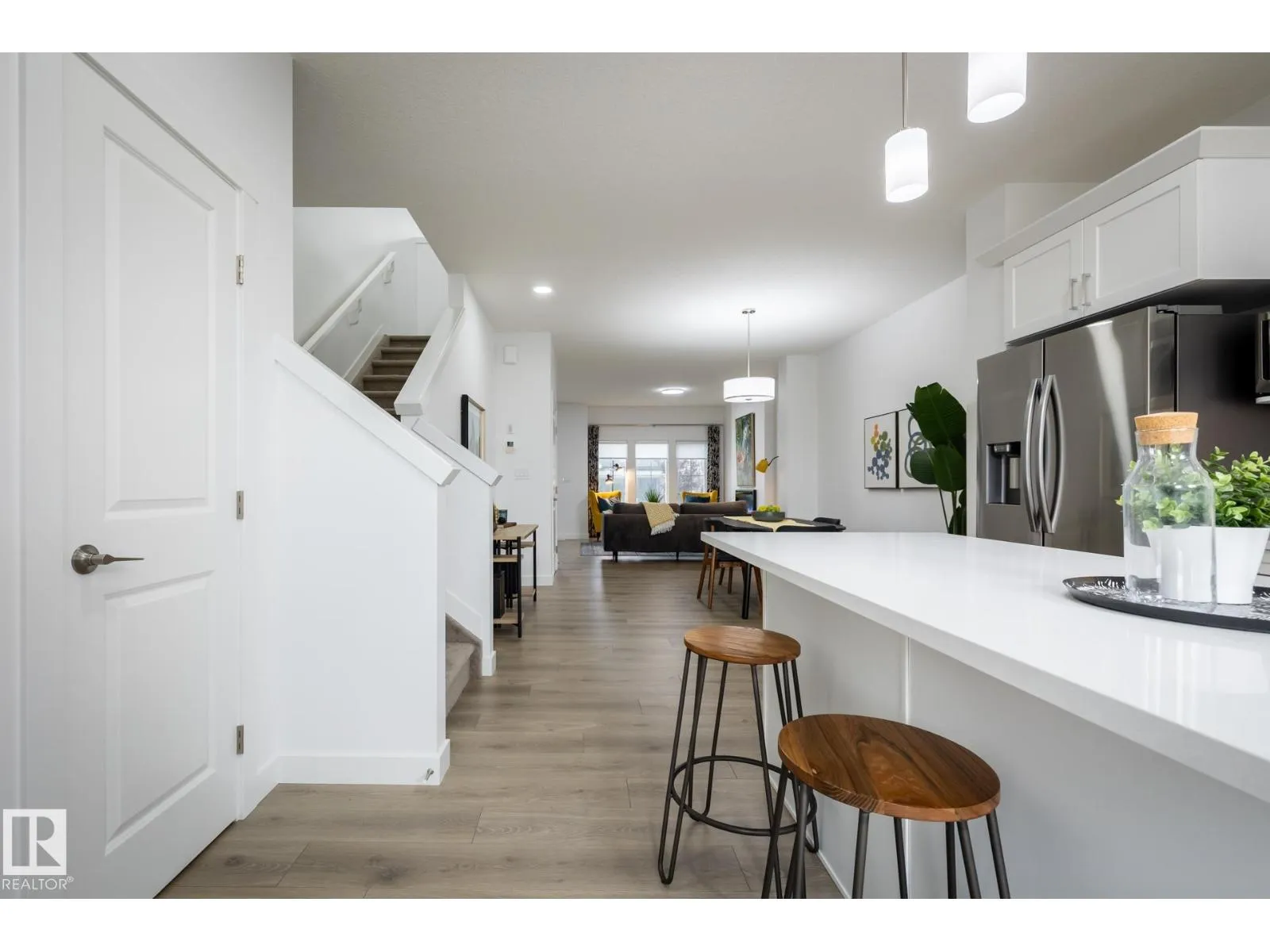 SouthPointe is a modern, family-friendly neighbourhood, offering a quiet, safe, and affordable living. The Kenton-Z by Akash Homes, a beautifully crafted 1548 sq ft two-storey home. Designed for modern family living, this home features an open-concept main floor which offers 9′ ceilings, flowing French-imported laminate flooring and an open-concept flow where the kitchen, dining, and living areas connect seamlessly -perfect