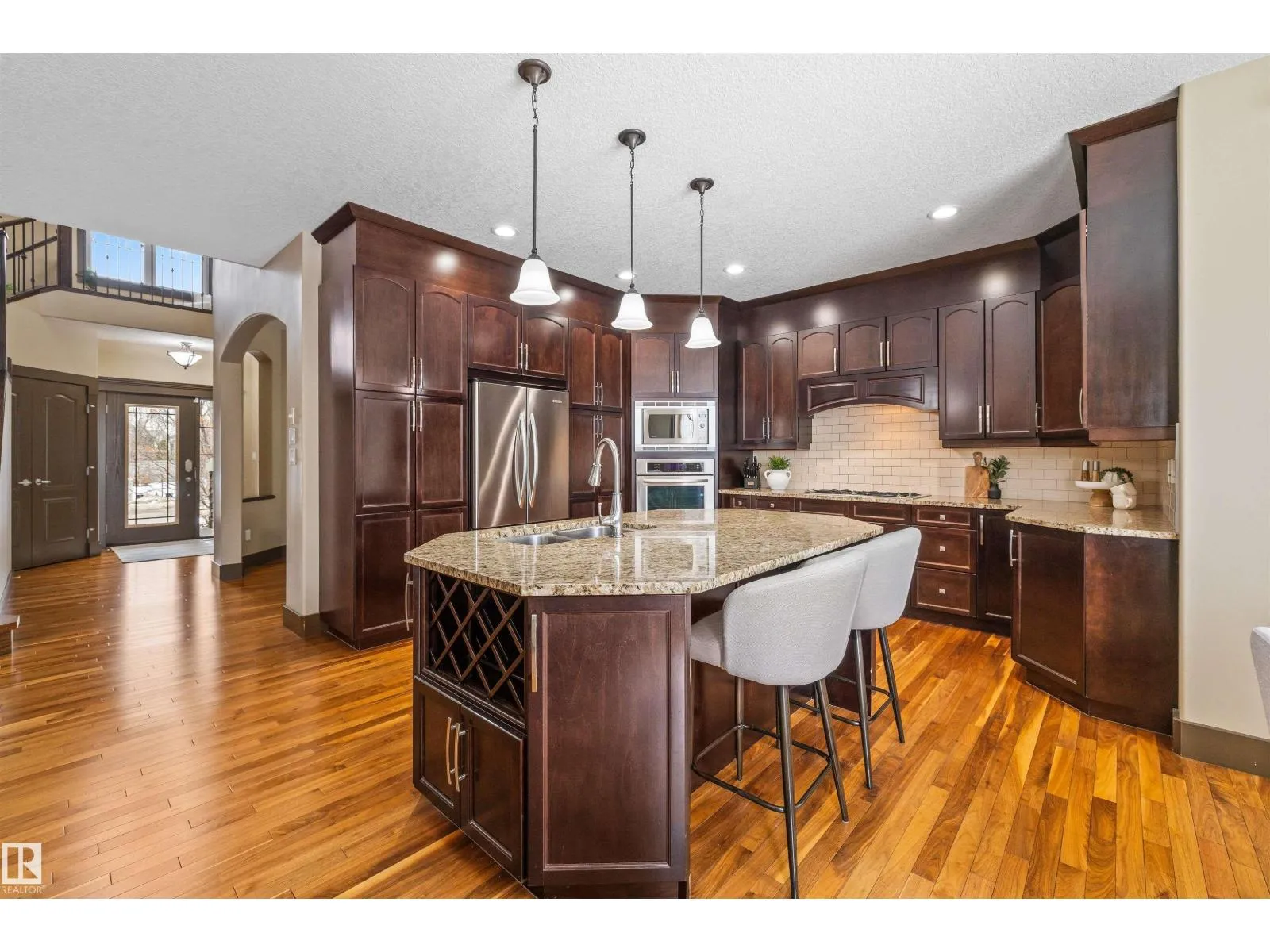 A Stunning Family ready home in Copperwood in west Edmonton featuring 5 bedrooms and 3.5 bathrooms plus a fully finished basement and a main floor den. A bright open foyer to the second level creates an airy first impression. The main floor offers open concept living with a kitchen featuring a built in wall oven with dark espresso cabinets and