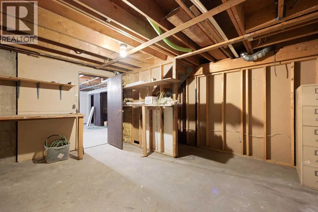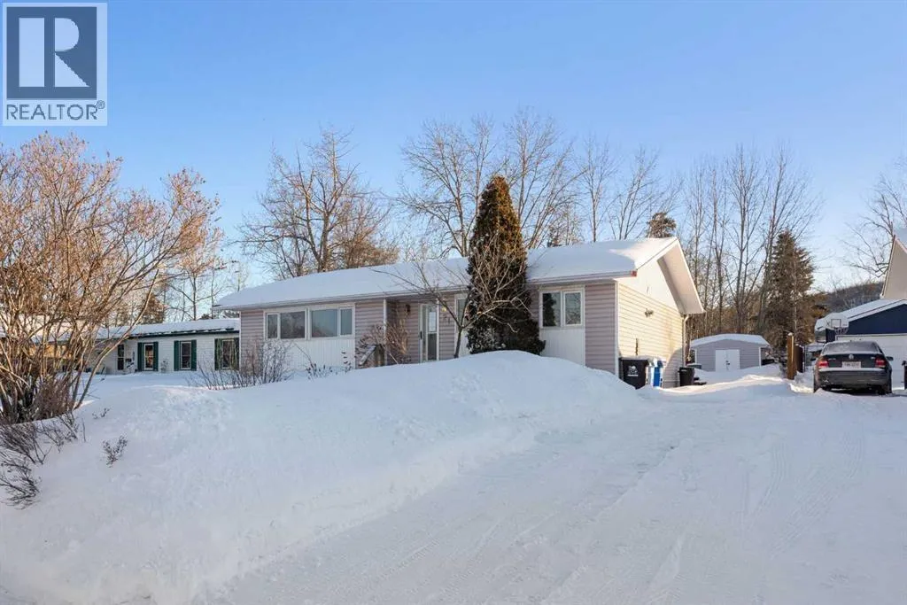 for someone to come in and make it exactly what they want it to be.Let us talk about that kitchen first. Red. High-gloss red cabinets that go floor to ceiling and catch every bit of light in the room. Crystal pendant lights hang above. There is a deep farmhouse sink and a mosaic tile backsplash. This kitchen is bold and it knows it. It is the kind of kitchen that people either fall in love with the second they walk in, or they see a fun renovation project. Either way, you are winning.The living room is large. Really large. A black brick wood-burning fireplace anchors the room and gives it serious character. A ceiling fan keeps things comfortable year round. Sliding doors lead right out to the yard. On a warm summer evening this flow is going to feel amazing.The primary bedroom has its own sliding door out to a covered deck space off the back of the home. A private covered spot to step out in the morning with your coffee and not answer to anyone. The 2-piece ensuite is right off the bedroom so you never have to share your sink. Two more good-sized bedrooms are on the main floor, both with laminate flooring and natural light. The 4-piece main bathroom has a white vanity, a linen tower, and a tub shower.Downstairs is your blank canvas. There is already a bedroom with carpet down there. A big open rec room footprint waiting for your vision. Laundry is set up. Storage is everywhere. The hard work of having the square footage is already done. You just get to decide what goes where.Outside, the yard is something people underestimate until they see it. Mature trees. A metal shed for extra storage. A swing set. A big fenced lot on a quiet cresce nt where kids can actually play. This is downtown Fort McMurray, which means schools, parks, shopping, and everything the city has to offer is minutes from your front door.This home is sold as-is and it is priced accordingly. That is the opportunity here. Get in, add your vision, and build real equity on one of the nicest quiet streets downtown.Check out the detailed floor plans where you can see every sink and shower in the home and the 360 tour. Are you ready to say yes to this address? (id:62650)