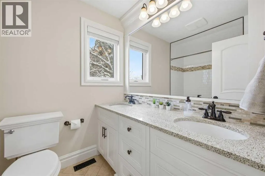 Luxuriously renovated from top to bottom, this stunning 3+2 bedroom home sits JUST STEPS FROM THE TRANQUIL PATHWAYS OF FISH CREEK PROVINCIAL PARK and offers nearly 3,700 sq ft of beautifully developed living space as well as an oversized triple attached garage. The main level features rich engineered hardwood and an abundance of natural light, beginning with a sunken living