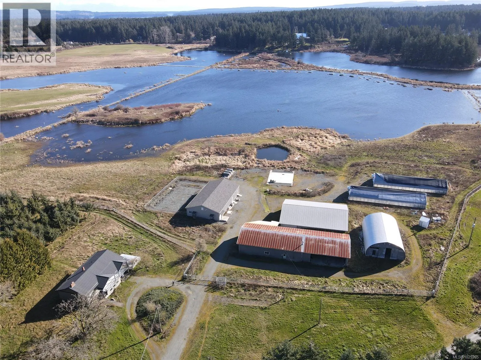 AGRICULTURAL / PRODUCTION OPPORTUNITY Farm on the shores of Quennell Lake, featuring lake and mountain views alongside a diverse agricultural and production infrastructure. The property includes a 3-bedroom, 2-bathroom residence with a large view deck. Extensive outbuildings support a range of agricultural or agri-business uses, including an 84’x48′ production and processing building, 40’x60′ quonset, 80’x60′ potato barn, 122’x40′ shop and