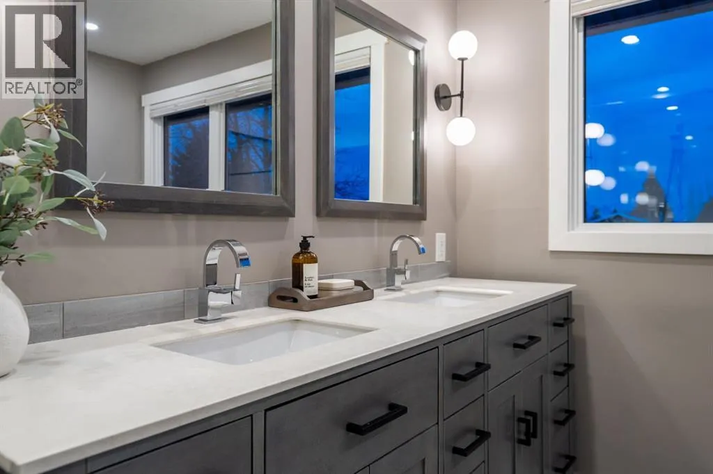 create a home that feels both refined & highly livable. The heart of the home is the custom LEGACY kitchen, professionally built with quality features throughout, including pull out pantry doors, dovetailed soft close drawers, built in wine racks, hidden double bins, premium appliances & a pot filler over the range. Finishing details throughout the home reflect the quality of the renovation, including hand scraped engineered hickory hardwood, porcelain tile, upgraded carpet & underlay, solid core interior doors, granite, quartz & marble countertops, knockdown ceilings, custom wood floor vents & a dramatic 9 foot concrete fireplace in the dining area. The kitchen & dining area really tie in nicely – you can walk out to your backyard from the dining area, making this an ideal home for entertaining. Upstairs, the reconfigured primary bedroom has an oversized ensuite with custom shower & heated tile floors. Upper laundry is a rare find, & is convenient for busy families & includes a floor drain for added peace of mind. Comfort & convenience are woven throughout, with network wiring to all bedrooms, wired for outdoor speakers, custom mudroom lockers, ample bedroom storage, rear coded lock access, soffit plug for holiday lights & thoughtful bedroom lighting improvements, including a second master light switch by the bed. The larger mudroom at the front entrance is ideal for busy families, but could also be easily converted to an office or main floor bedroom. This home also delivers substantial behind the scenes upgrades. Most aluminum wiring was replaced with copper, with remaini ng aluminum professionally pigtailed. A new electrical panel was installed, along with A/C & newer furnances. The majority of copper plumbing lines were replaced with PEX, exterior wall insulation was upgraded where opened, new insulation was added to both attics, cold air returns were optimized for airflow, venting was relocated where needed. Windows were replaced except for the front bay, most exterior doors were replaced, exterior lighting was added, new handrails were installed & the basement family room window was enlarged for improved emergency egress. Outside, enjoy a newer aggregate patio built for entertaining & a low maintenance backyard with paved back lane access. The exterior was recently re-imagined creating a classic & timeless look, including new exterior doors. The setting is exceptional, with schools, shopping, dog park, Fish Creek & the lake all within walking distance. Truly special opportunity in Calgary’s most sought after lake community. (id:64429)