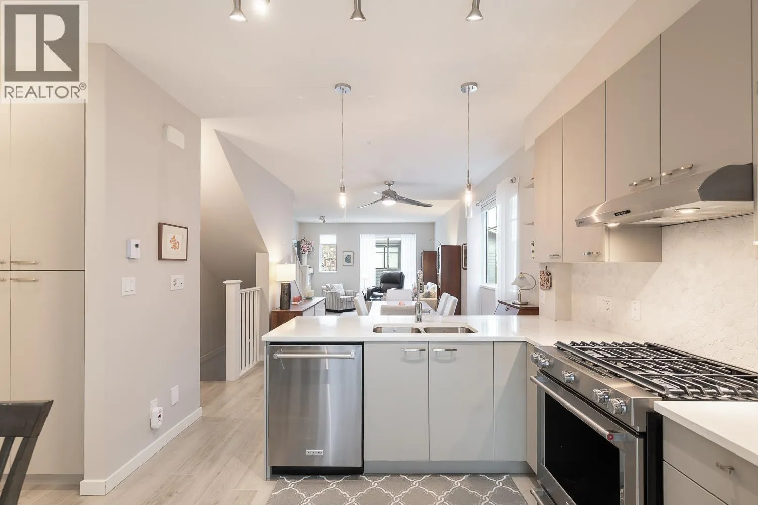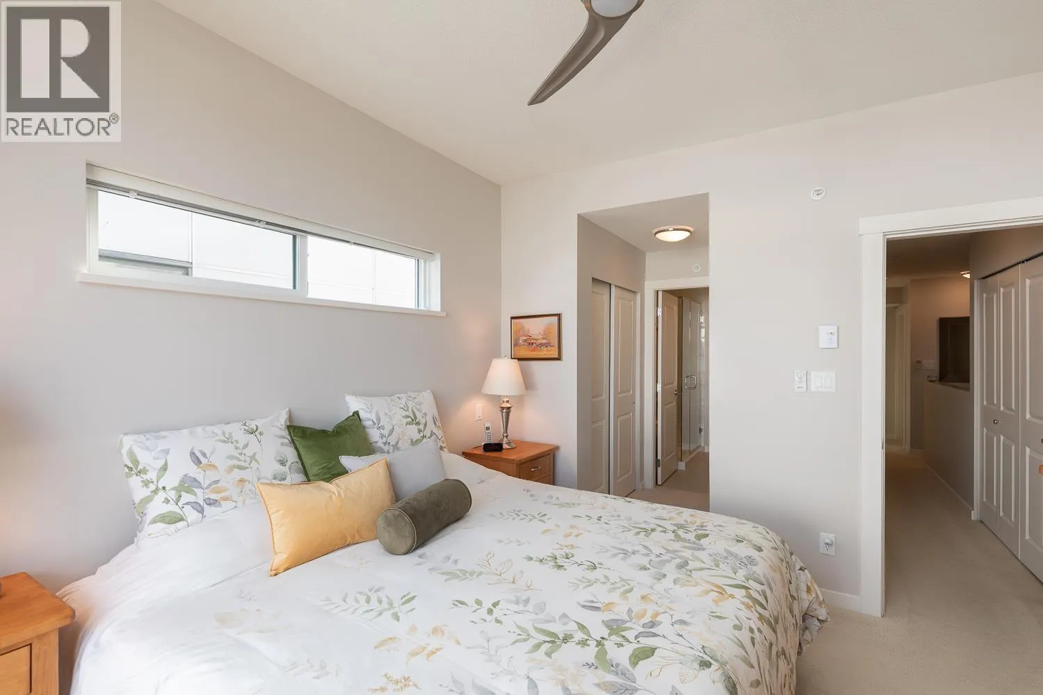 Beautiful 3 bedroom END townhouse in Summits View at Eaglewind! Modern open plan living featuring 9 ft ceilings, extra side windows & natural light. Powder room, inviting gas fireplace, stove & BBQ line, Kitchen Aid appliances & quartz counter tops. Walk out to south facing patio/yard from kitchen, an ideal spot for indoor outdoor summer entertaining & gardening. Custom Hunter