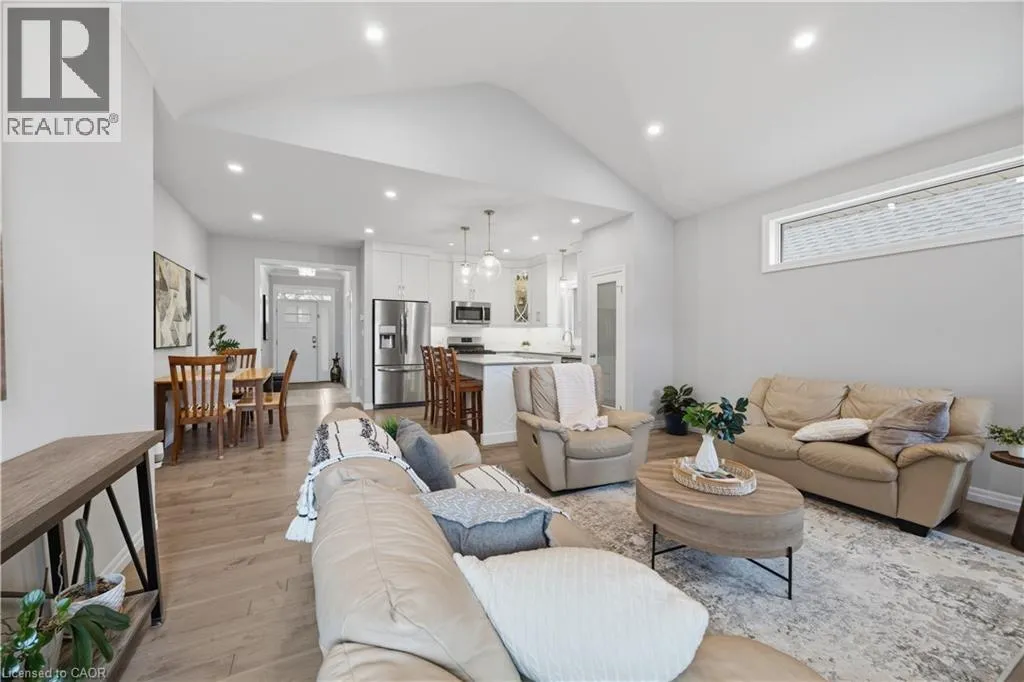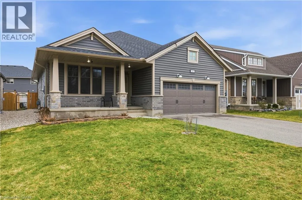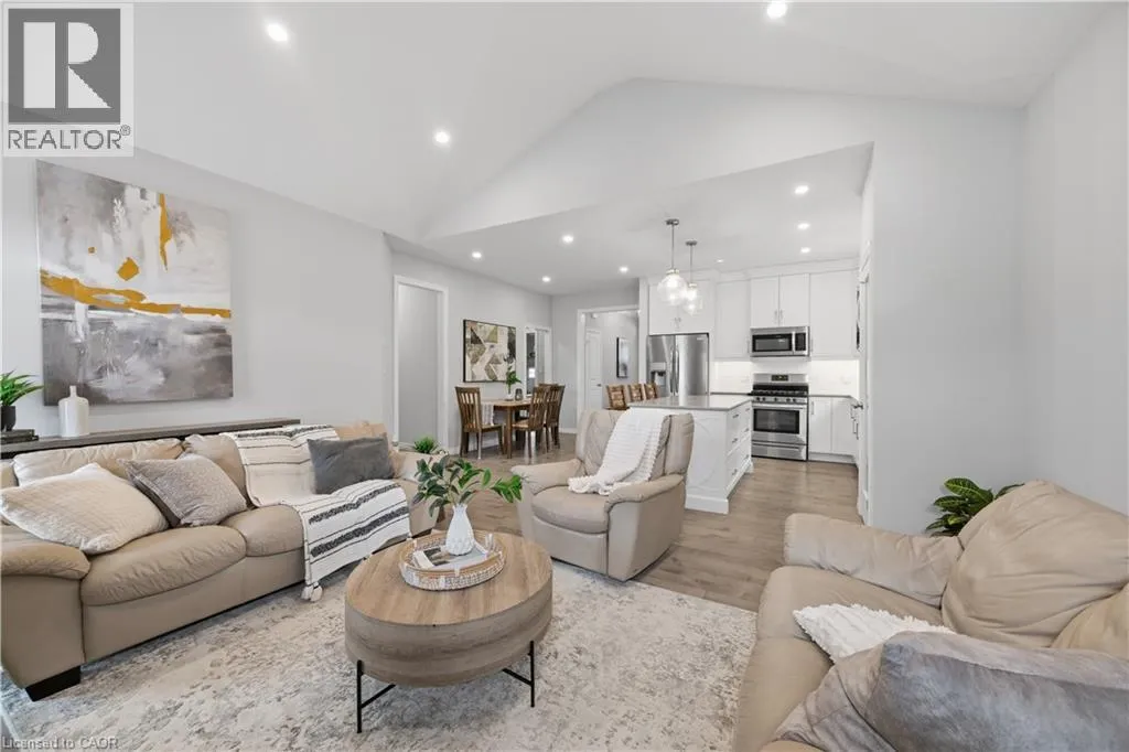 Welcome to this beautifully maintained 2020-built bungalow in a quiet, newer area of Tillsonburg and still under Tarion warranty. Offering 3+2 bedrooms and 3 full bathrooms, this home delivers the perfect blend of modern design, functionality, and low-maintenance living. Step inside to an inviting open-concept layout featuring 9-foot ceilings and a stunning cathedral-style living room filled with natural light. The