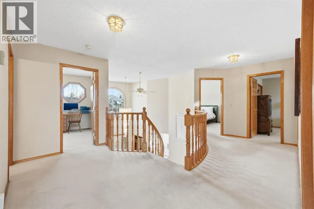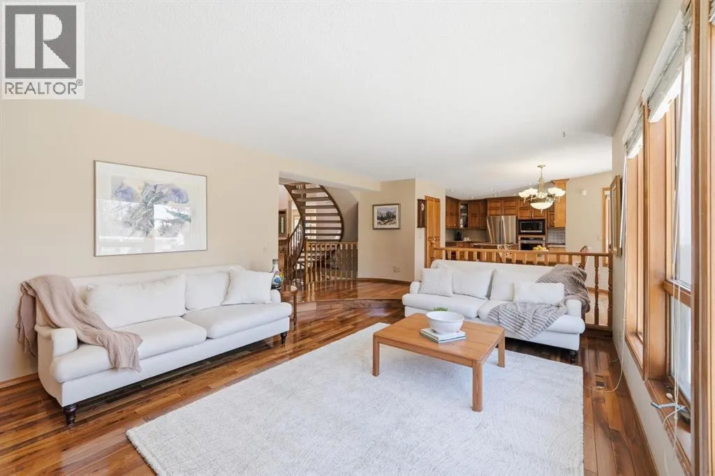 An exceptional opportunity in the prestigious community of Pumphill.Set on a beautifully treed and private lot, this expansive residence offers over 4,200 sq ft of developed living space, with 5 bedrooms and 3.5 bathrooms, designed for both refined living and effortless entertaining.From the moment you enter, you’re greeted by soaring ceilings and an abundance of natural light, creating a sense
