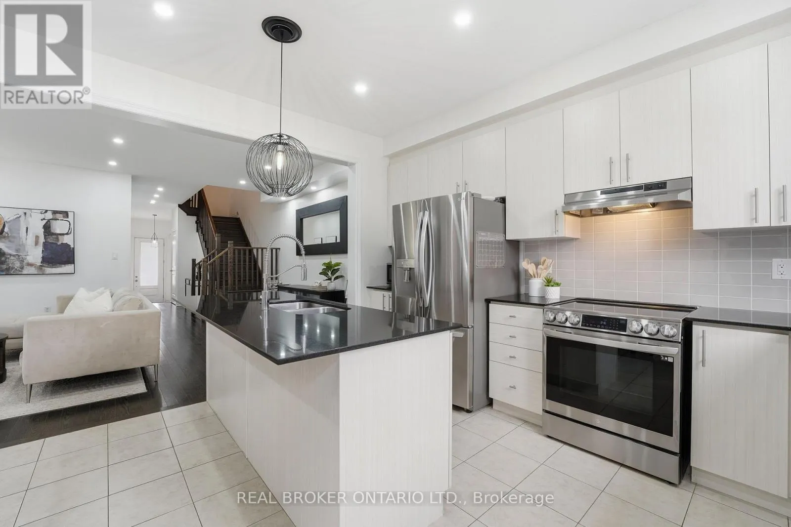 Rare offering in Alcona. This 4 bedroom semi detached home, built in 2017, delivers the space buyers are searching for without the detached price point. The open concept main floor features engineered hardwood, pot lights, and a fireplace that anchors the living space. The kitchen is finished with ivory cabinetry, quartz countertops, stainless steel appliances, and a centre island with
