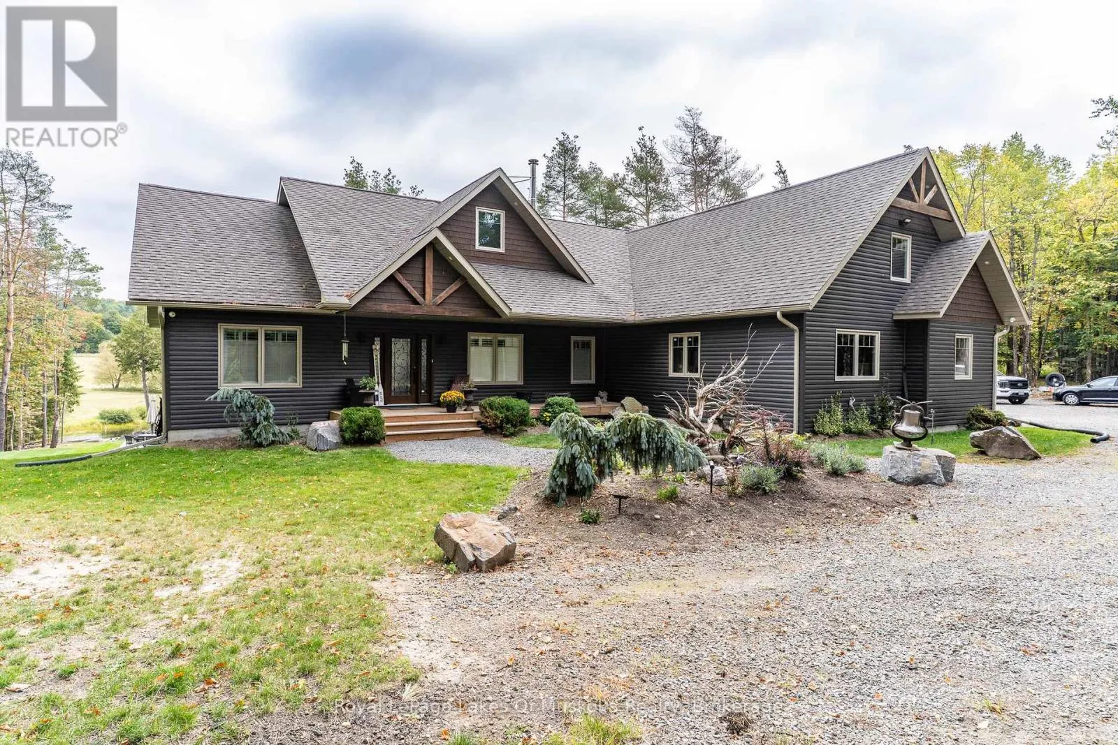 This is it! The complete package, sitting on about 4.5 acres just minutes from Hwy 11 this large custom home has a triple attached garage, walkout basement and around 400′ of waterfront just a stones throw from Mary Lake. Offering direct access to beautiful Mary lake and the 4 lake chain, this unique property has quiet and private dockage in