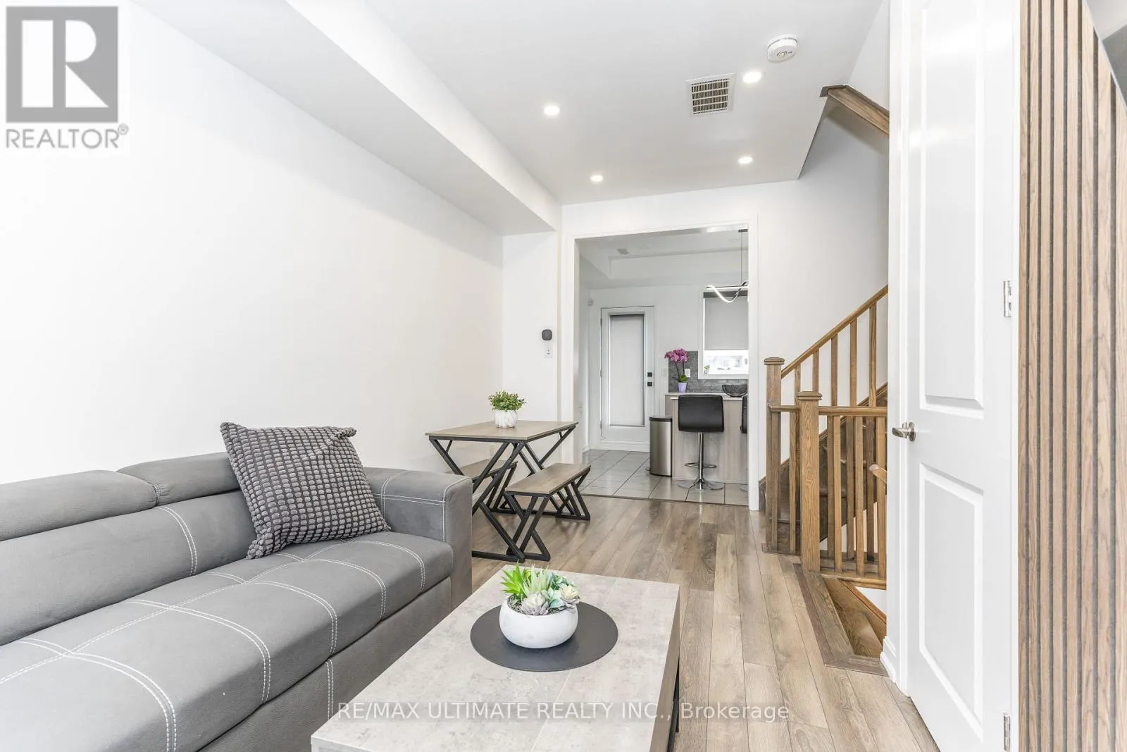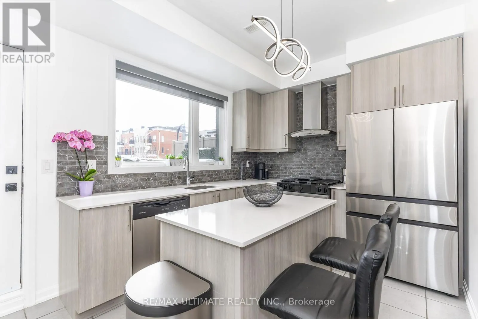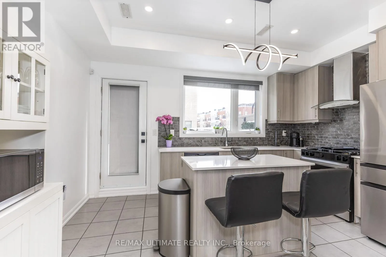 Modern design freehold townhome. Freshly painted kept like New built . Newly installed pot lights thru kit, LR, basement & hallways. New high end S.S Appliances. Upgraded modern T.V. cabinet with fireplace newly installed . Finished Basement rec. room (heated floors) comb. laundry new front loading Samsung washer/Dryer. 2 large balconies with gas BBQ for
