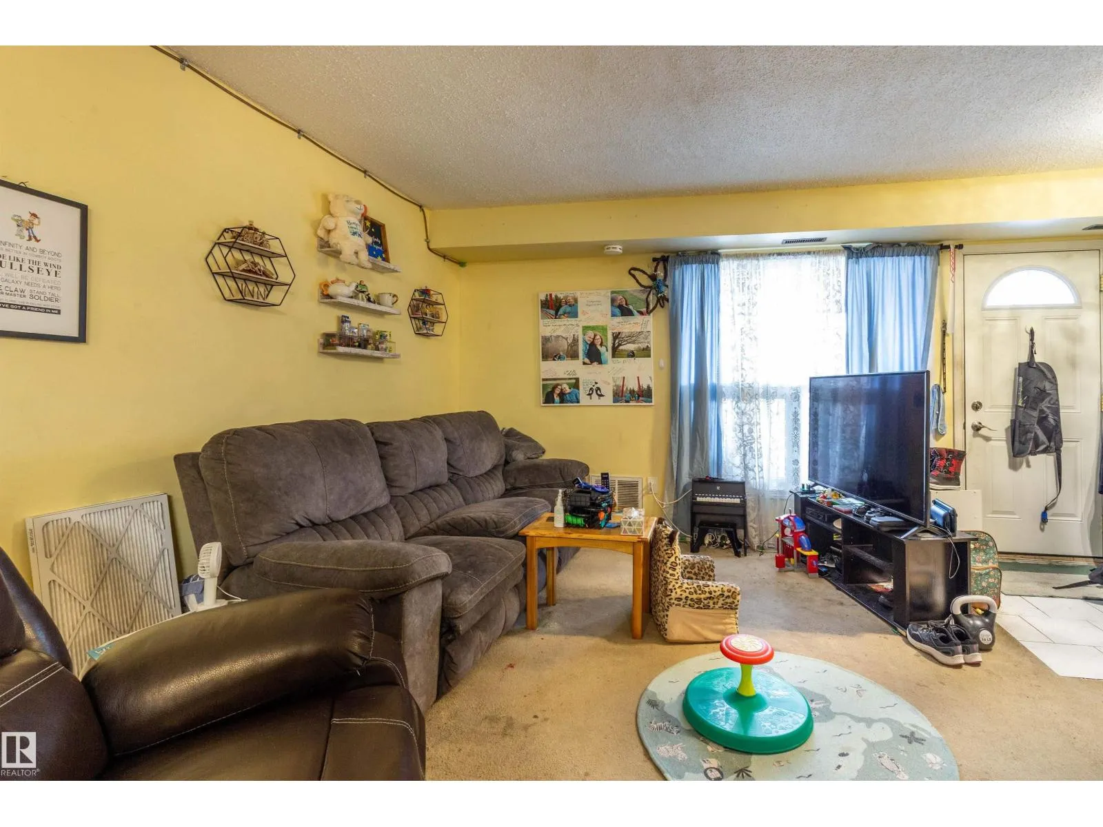 Welcome to the highly desirable Surrey Gardens! This MASSIVE end unit is complete with 2 bedrooms, 1 bath and a big FLEX room making it one of the largest units in the complex. Entering the property from the giant front BALCONY, immediately you will notice the WOOD BURNING fireplace – a rare find! The spacious living room and formal dining