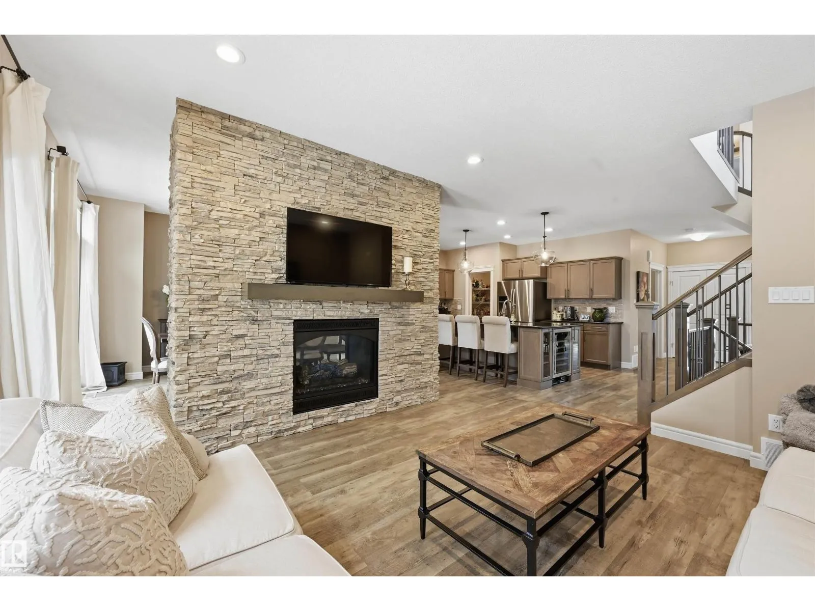 Turn-key ready home boasting timeless finishes in a thriving SW community! Warm hues, soft touches & ample upgrades create the most inviting space! Open-concept home is made for entertaining centered around a gorgeous double-sided gas fireplace w/ full tile surround! Host in the spacious kitchen w/ an over-sized granite island, gas stove, beverage cooler & walk through pantry. Upstairs find