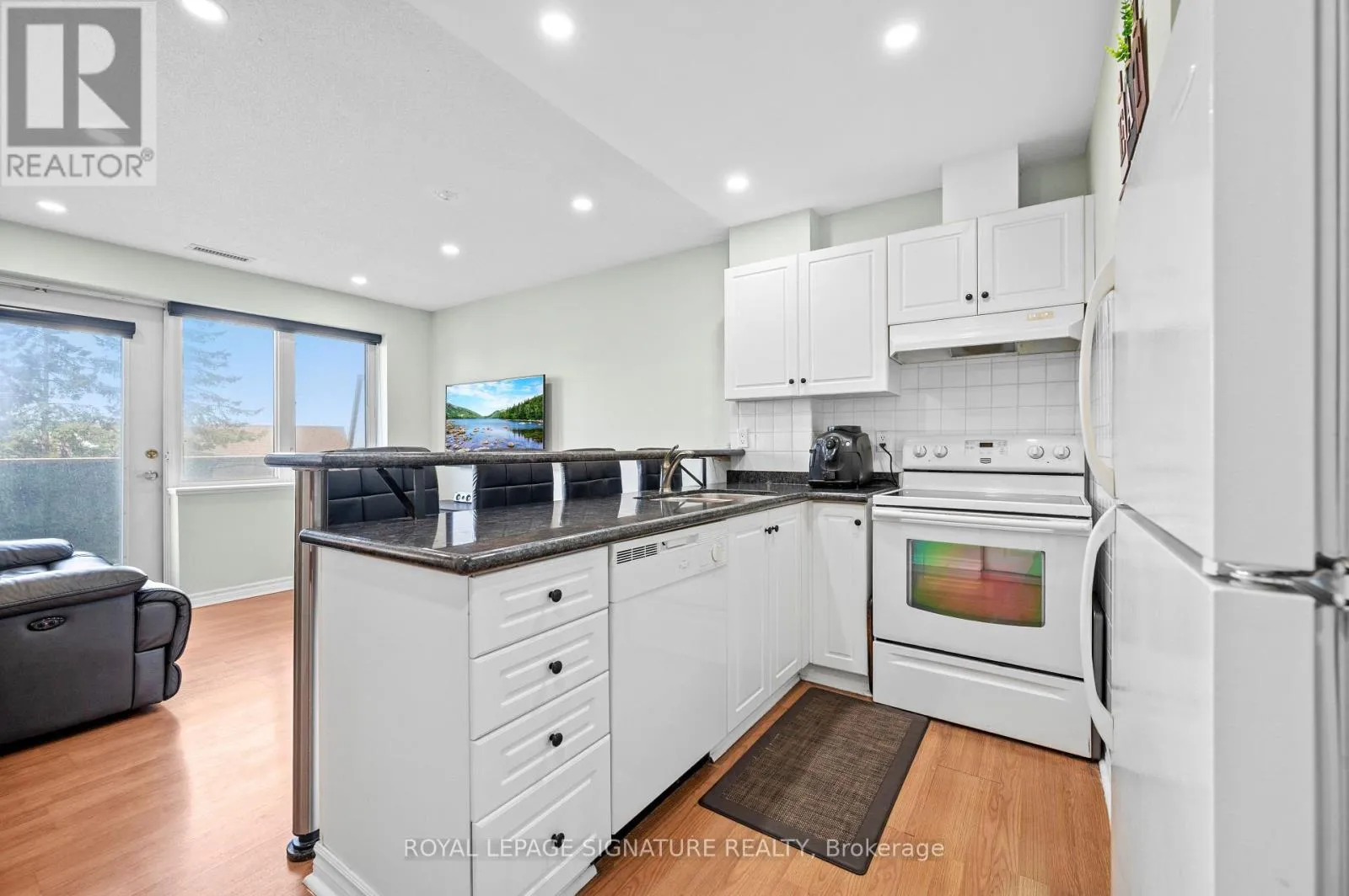 Well maintained and move-in ready, this stunning 1-bedroom, 1-bathroom condo offers the perfect blend of comfort, functionality, and lifestyle in the highly sought-after Brampton East community. Featuring a bright open-concept layout, this unit showcases laminate and ceramic flooring throughout, a modern kitchen with granite countertops, undermount sink, and ceramic backsplash, and the convenience of ensuite laundry. The spacious primary bedroom
