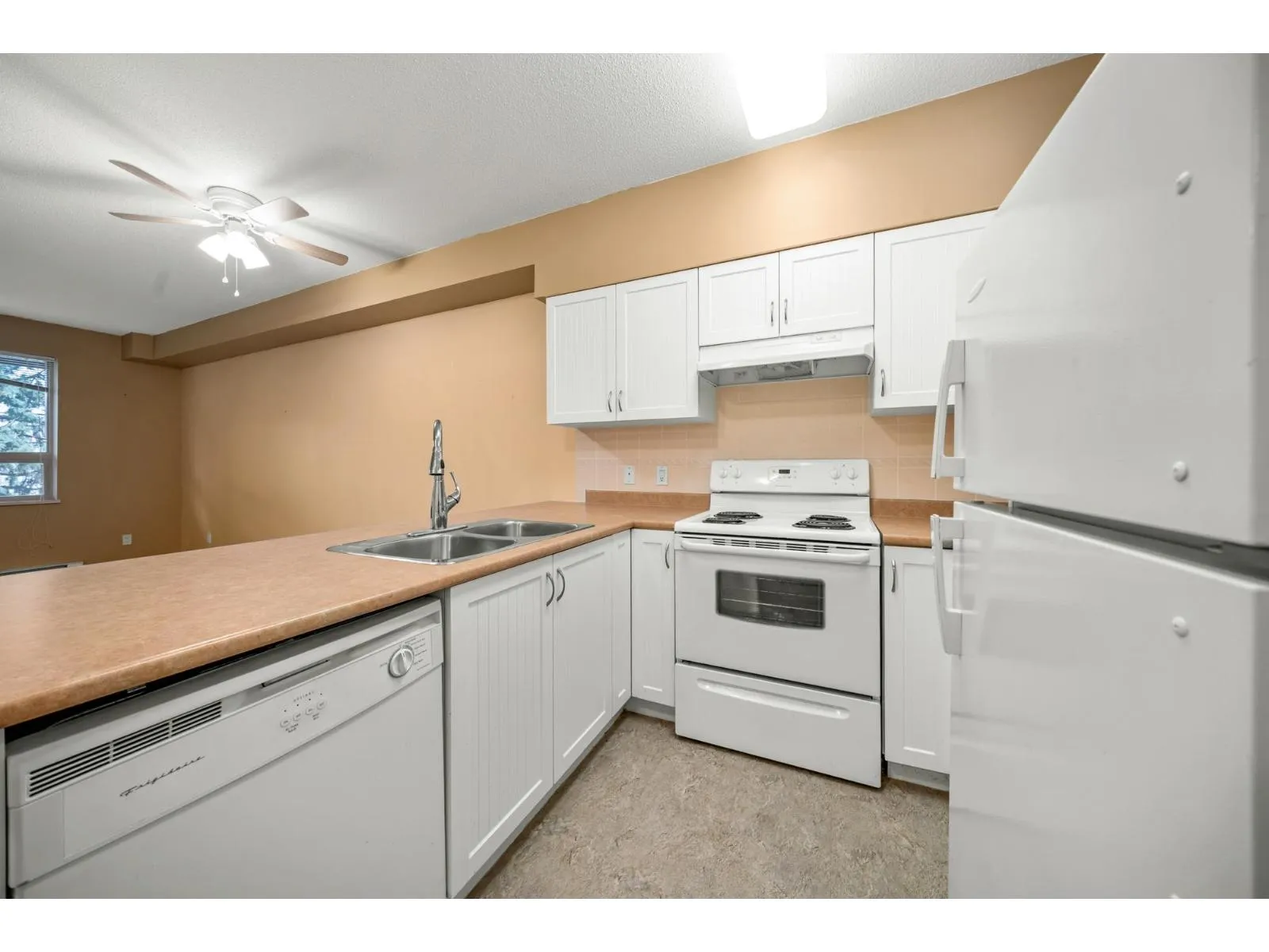LOWEST PRICE IN THE BUILDING! Welcome to Fleetwood Gardens – 55+ Adult Oriented Complex in Quiet Prime Location! Modern 1 Bed, 1 Bath Condo with 696 sqft of open-concept living! Big Windows offers NATURAL LIGHT throughout the entire living space, sleek kitchen, in-suite laundry & large bathroom with walk-in shower. Enjoy having your coffee or sipping a glass of