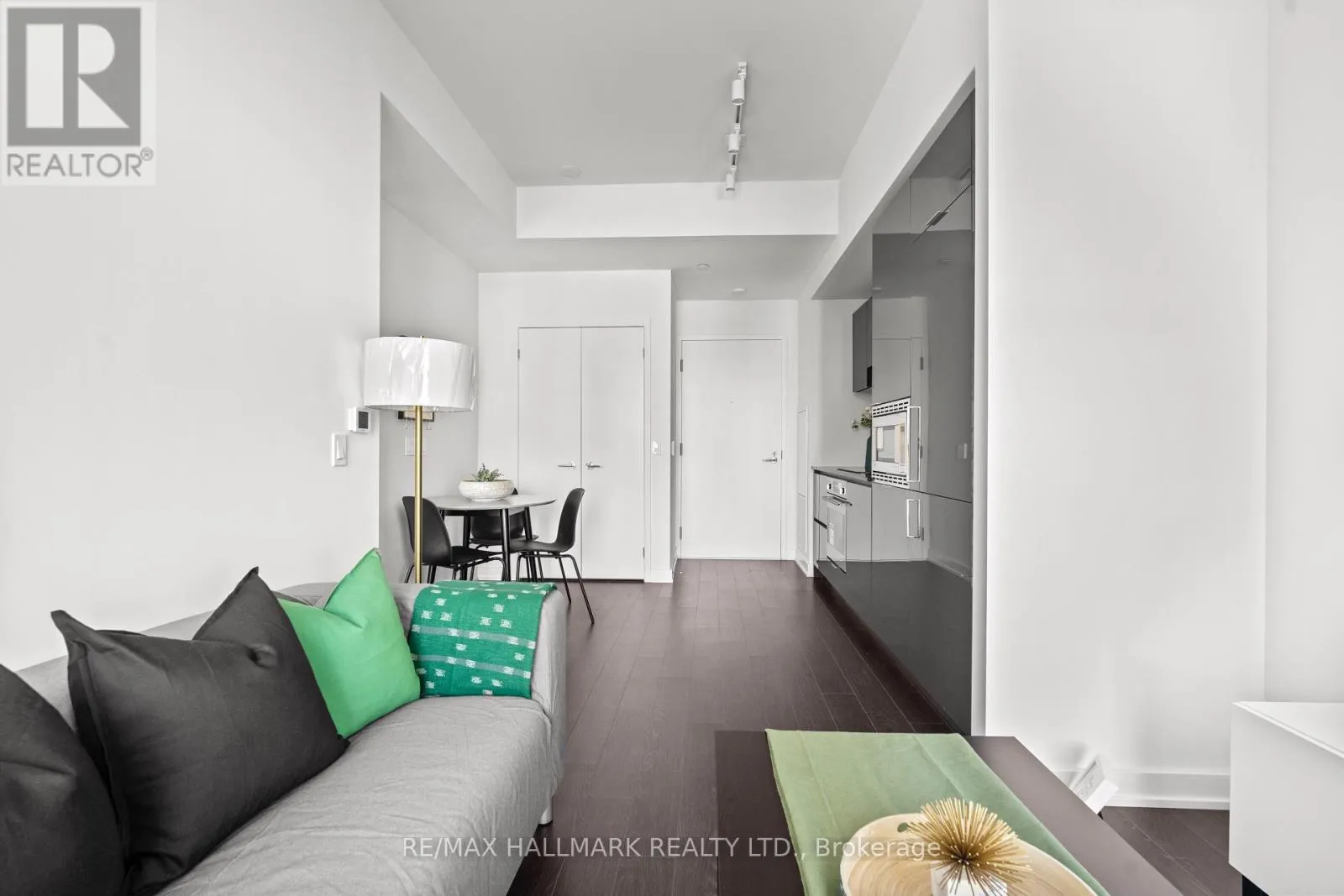 This nearly new fully furnished 1-bedroom condo on the 14th floor offers bright, spacious living with 9 ft ceilings and floor-to-ceiling windows. The modern kitchen boasts quartz countertops, a ceramic backsplash, and built-in appliances, all complemented by sleek laminate flooring throughout. Enjoy an array of luxurious amenities, including 24/7 concierge service, a fitness centre, yoga studio, party and meeting rooms,