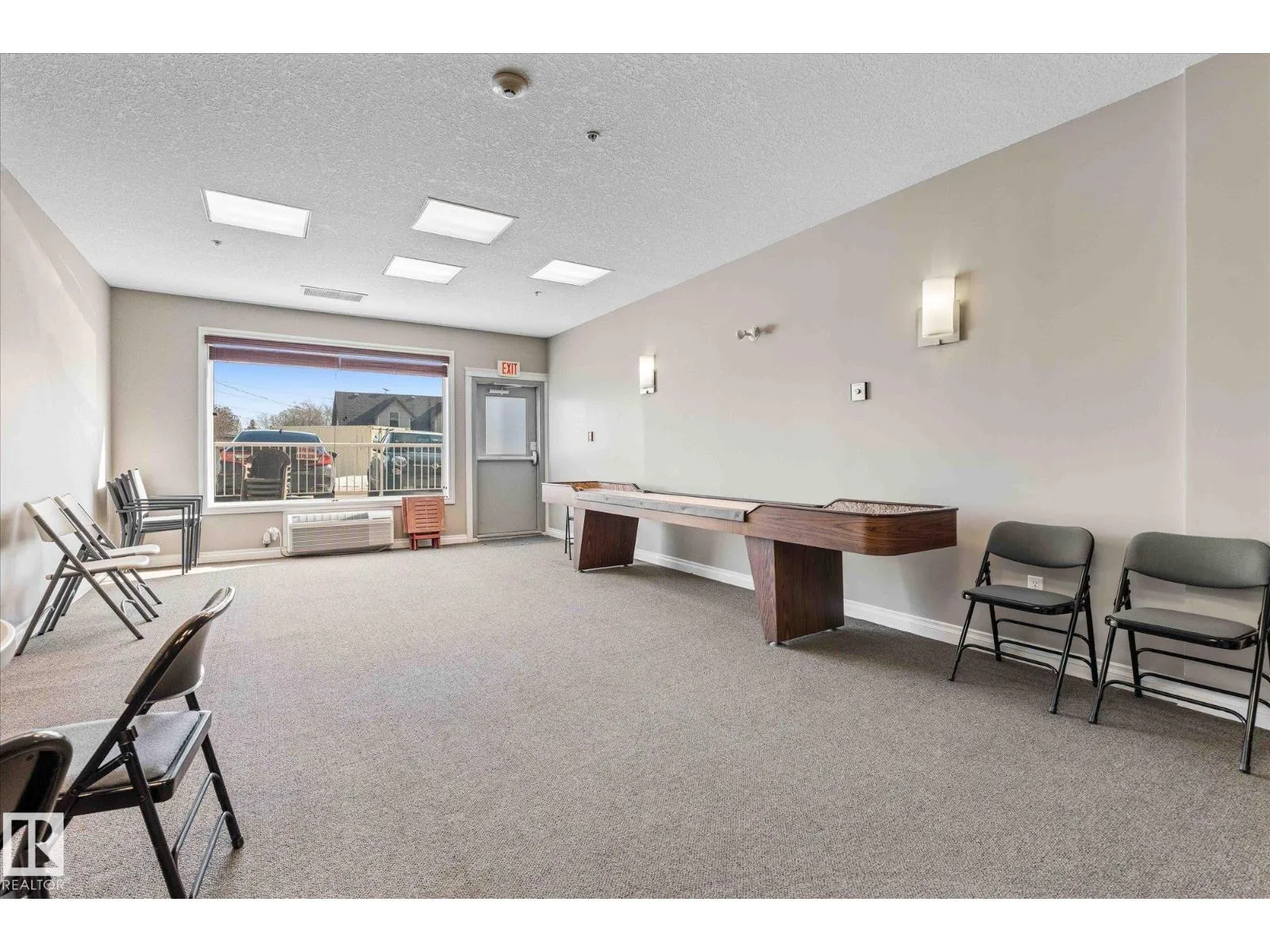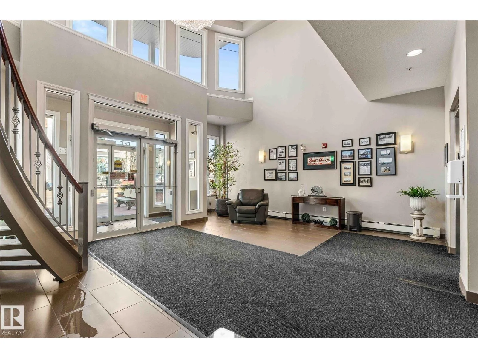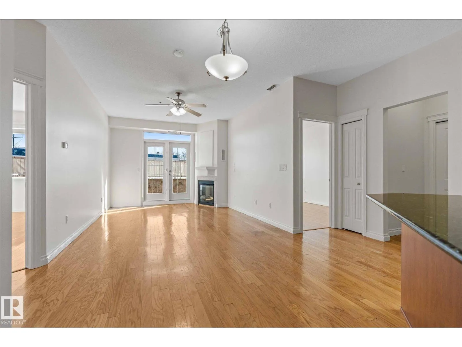 RARE GROUND-FLOOR CONDO in the highly regarded Barth & Gosset Manor downtown Stony Plain! This 2-bed, 2-bath unit offers low-maintenance living in a quiet, secure, concrete-built building. Freshly painted, the bright & functional layout features a corner gas fireplace, granite countertops, s/s appliances & a brand new electric stove. The primary bedroom includes a private 3-piece ensuite w/ an accessible