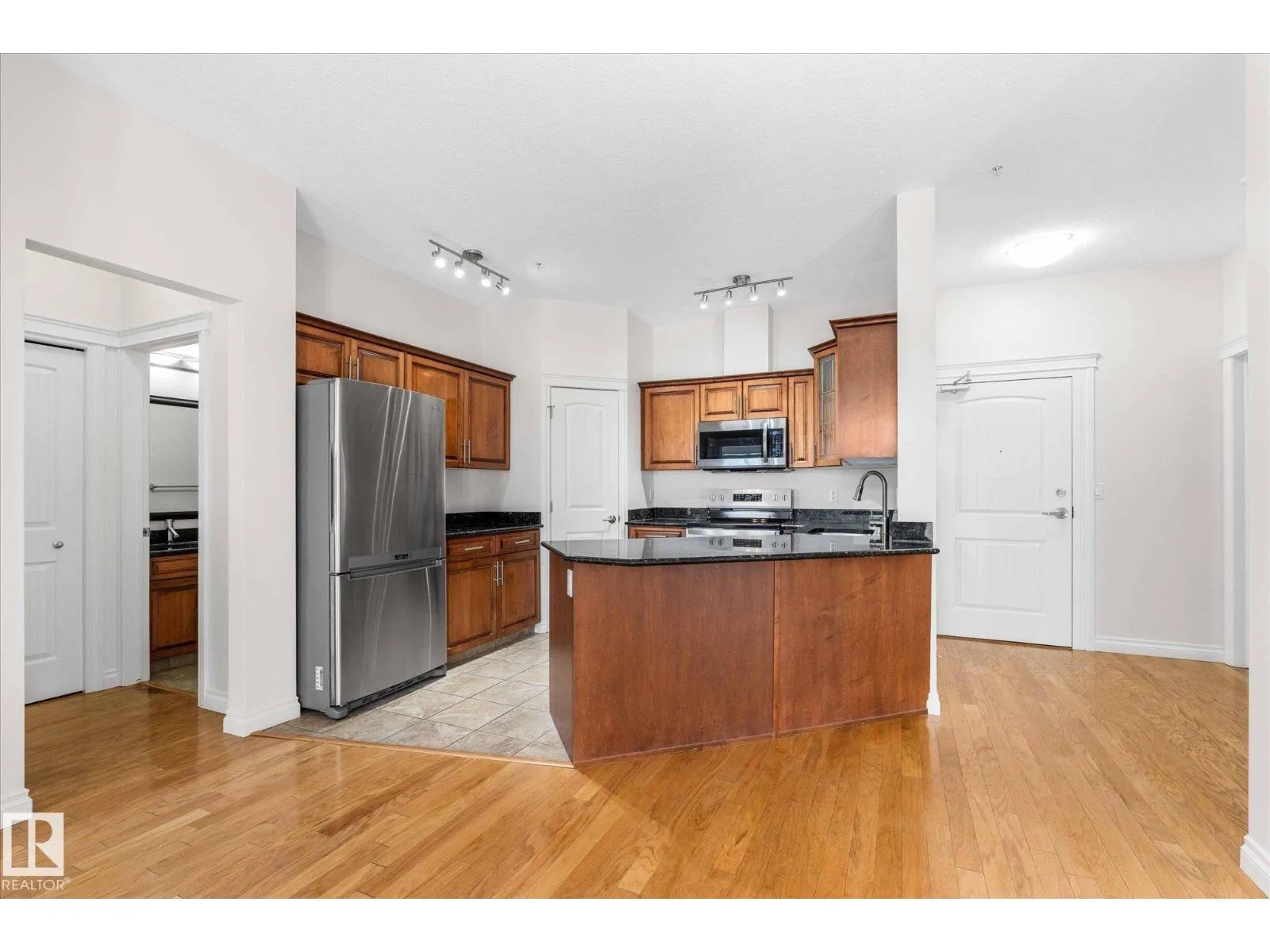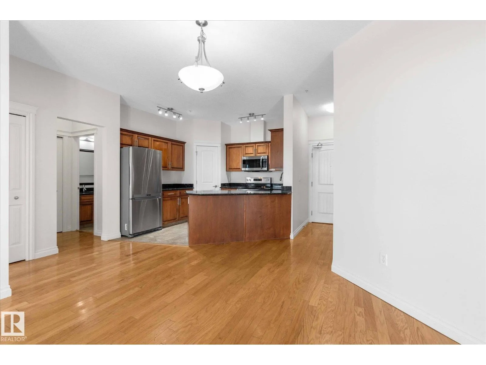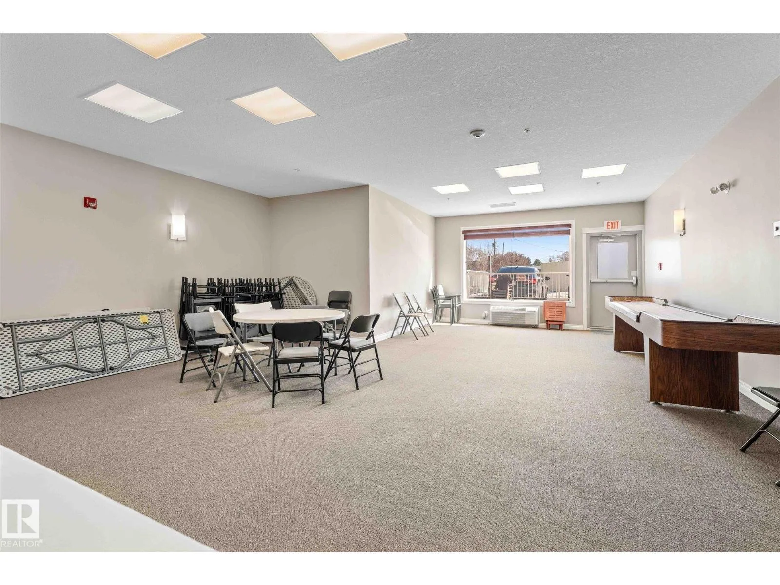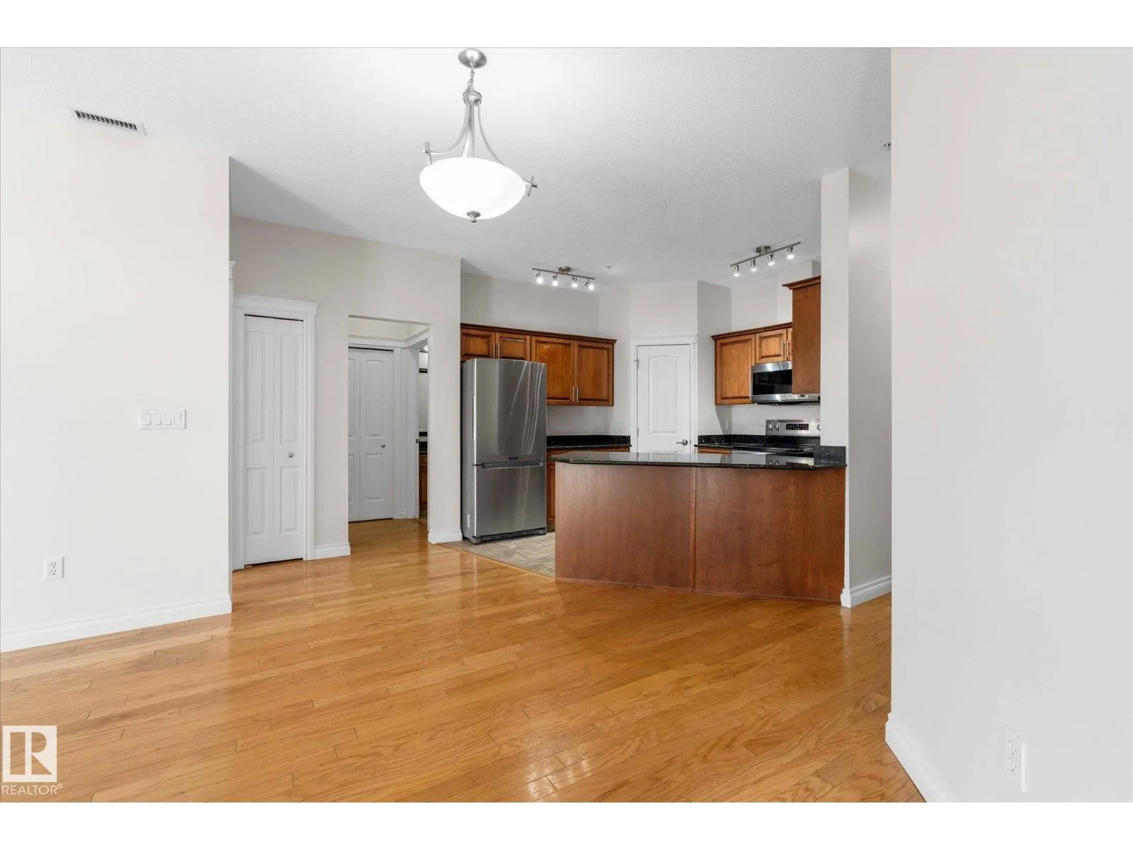 RARE GROUND-FLOOR CONDO in the highly regarded Barth & Gosset Manor downtown Stony Plain! This 2-bed, 2-bath unit offers low-maintenance living in a quiet, secure, concrete-built building. Freshly painted, the bright & functional layout features a corner gas fireplace, granite countertops, s/s appliances & a brand new electric stove. The primary bedroom includes a private 3-piece ensuite w/ an accessible