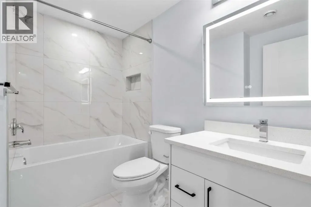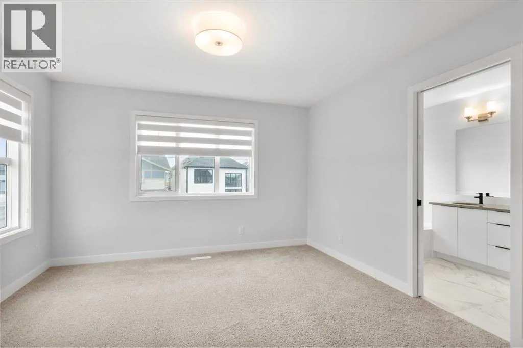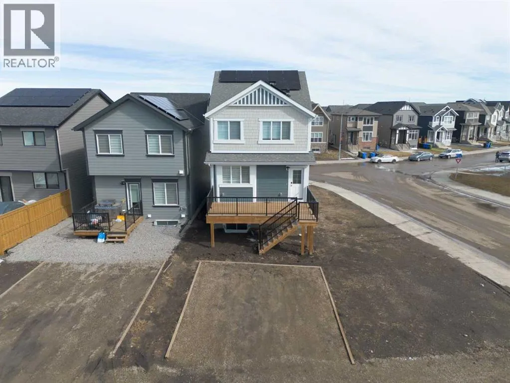 elevated atmosphere throughout.Offering 4 bedrooms and 3.5 bathrooms, this home is designed to balance everyday comfort with long-term flexibility. The main floor is anchored by a fully upgraded, expanded kitchen that stands out in both design and function—featuring a built-in oven and microwave, a striking hood fan over the gas range, and elegant stone countertops paired with a full-height backsplash. A Blanco white super single Silgranit sink, complemented by tasteful hardware and eye-pleasing cabinetry, adds a refined finish. The central kitchen island and carefully selected lighting create a natural gathering space, making this a true chef’s and entertainer’s dream, seamlessly connected to the dining and living areas.The living room is both spacious and visually striking, highlighted by a massive feature window adorned with sophisticated custom drapery that introduces an elegant, almost regal presence to the space. Paired with custom blinds, it balances natural light and privacy beautifully. A fireplace anchors the room, all set beneath nearly 12-foot vaulted ceilings that create a dramatic sense of scale rarely found at this price point.Upstairs, the layout is thoughtfully designed for both privacy and convenience. The primary suite serves as a comfortable retreat, complete with a walk-in closet and a well-appointed ensuite featuring a double vanity and a soaker tub. Two additional bedrooms are positioned away from the primary suite, offering separation for family or guests, while upper-floor laundry enhances everyday ease.A standout feature is the fully permitted City of Cal gary legal basement suite, complete with a separate entrance. With its impressive ceiling height, dedicated bedroom and office space, and key infrastructure already in place, it offers flexibility—ideal for extended family, guests, or future rental income.Set on an oversized lot with a southwest-facing backyard, the outdoor space is just as inviting. A full-width rear deck provides the perfect setting for summer evenings, while the fully fenced yard and rear parking pad add practicality and future potential.Built by Jayman, this home also benefits from energy-efficient construction and advanced performance features, including solar panels, triple-pane windows, and an on-demand hot water system. The Golden Key program provides additional peace of mind through ongoing care and service support.Located in the sought-after lake community of Mahogany, residents enjoy year-round lake access, beaches, pathways, and recreation opportunities rarely found in other Calgary communities. (id:62650)