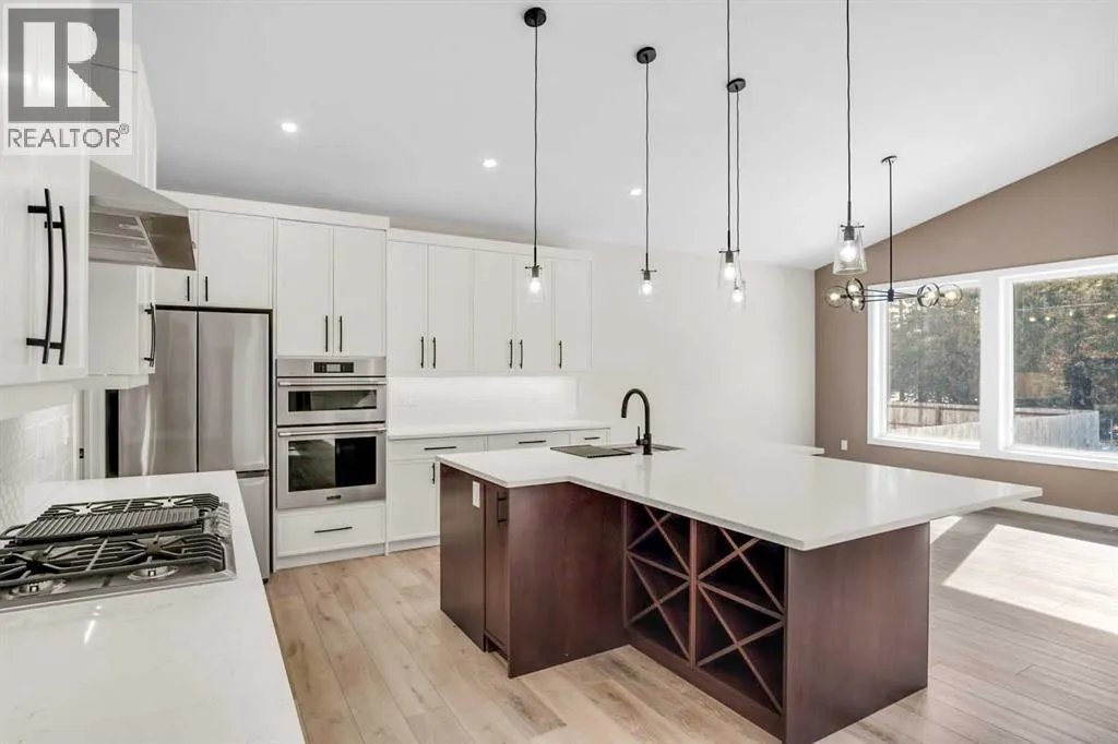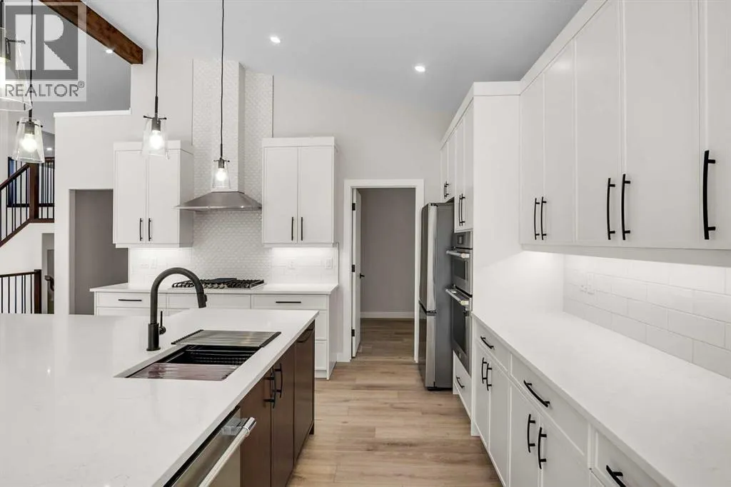 style with everyday comfort. A mix of luxury vinyl plank, plush carpet, and ceramic tile flooring creates a seamless and sophisticated ambiance throughout. At the front of the home, a spacious bedroom is perfectly positioned near a beautifully appointed 4-piece bathroom, ideal for guests or a private home office. The primary suite is a sanctuary, boasting a generous walk-in closet and a luxurious 5-piece ensuite with a standalone soaker tub offering breathtaking mountain views, a dual vanity, and a separate water closet for added privacy. Above the heated triple-car garage, a versatile bonus room provides endless possibilities—whether a charming playroom, a refined home library, or a serene music retreat. The gourmet kitchen is an entertainer’s dream, featuring sleek quartz countertops, a gas cooktop, double wall ovens, a built-in dishwasher, and an oversized island with seating on all sides. A butler’s pantry, complete with a secondary sink and ample shelving, connects to the adjoining laundry room, ensuring effortless organization. The living room exudes sophistication, centered around a floor-to-ceiling tiled gas fireplace, while oversized windows flood the space with natural light. Step outside onto the no-maintenance composite deck, complete with modern railing and a gas BBQ hookup, perfect for seamless indoor-outdoor entertaining. The fully developed basement is an exceptional extension of the home, featuring 9-foot ceilings, in-floor heating, a spacious mechanical room, abundant storage, a large open living area, a stylish 4-piece bathroom, and two additional wel l-sized bedrooms. Completing this remarkable home is the heated triple-car attached garage with epoxy flooring, offering ample space for vehicles, hobbies, and storage. The front yard is beautifully landscaped with lush sod and will have a planted tree in the spring, adding to the home’s striking curb appeal. This residence is a true masterpiece of design and craftsmanship. Don’t miss the opportunity to make this extraordinary home yours—schedule your private viewing today! (id:64429)
