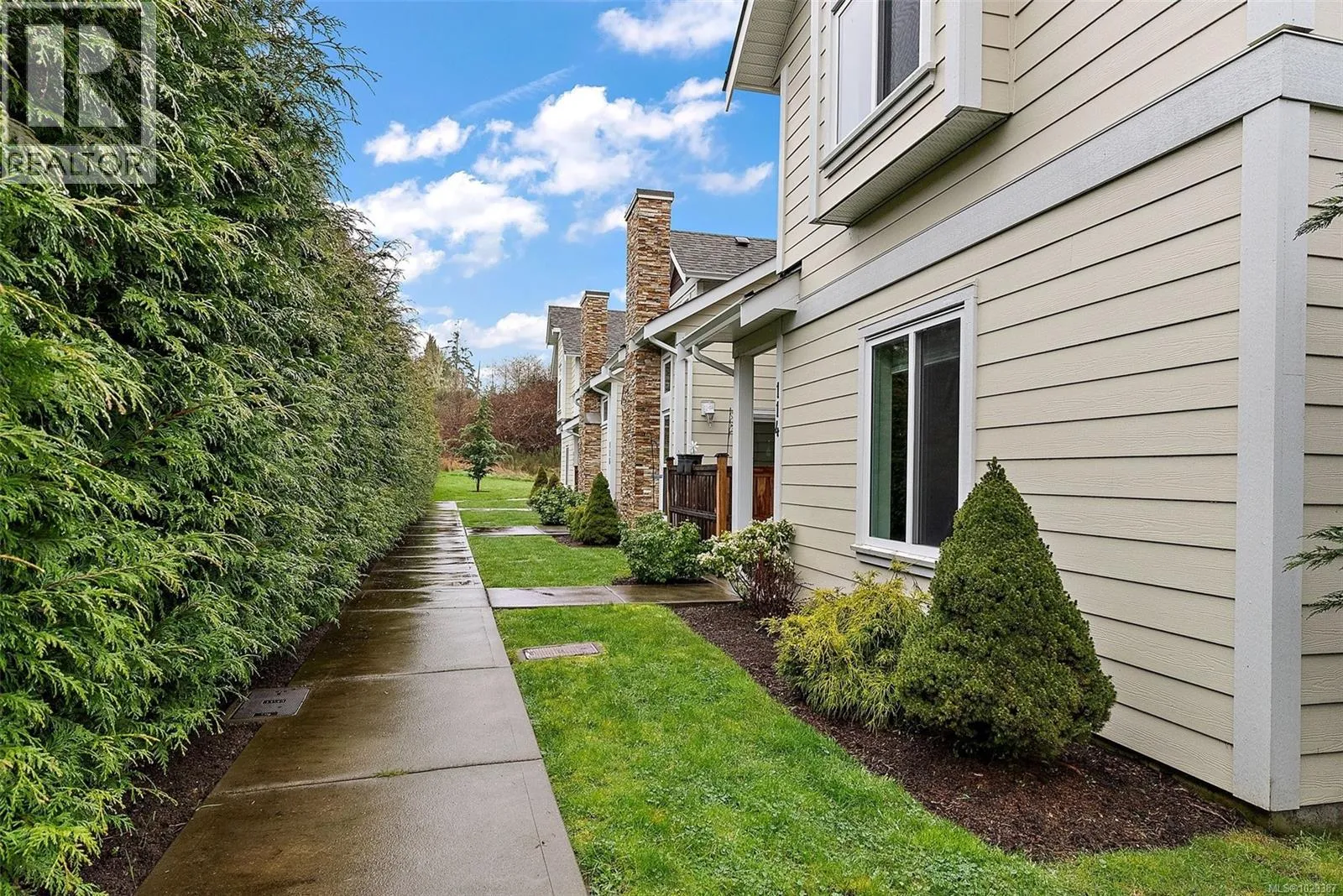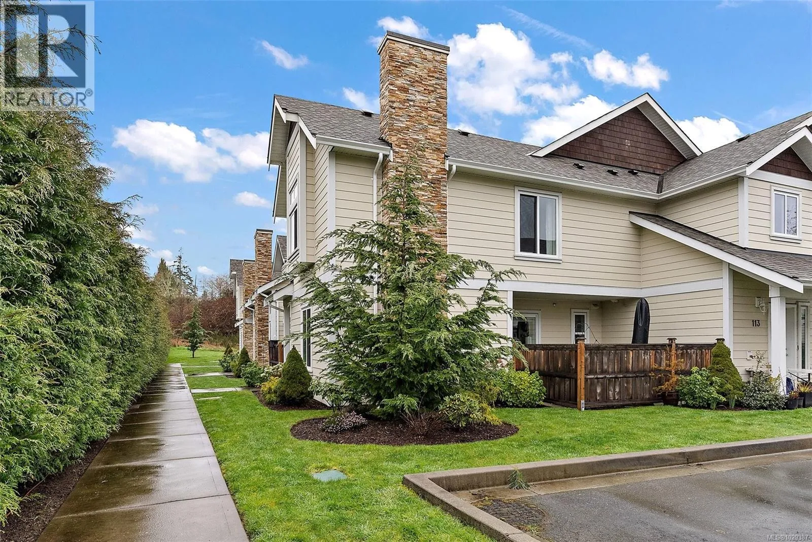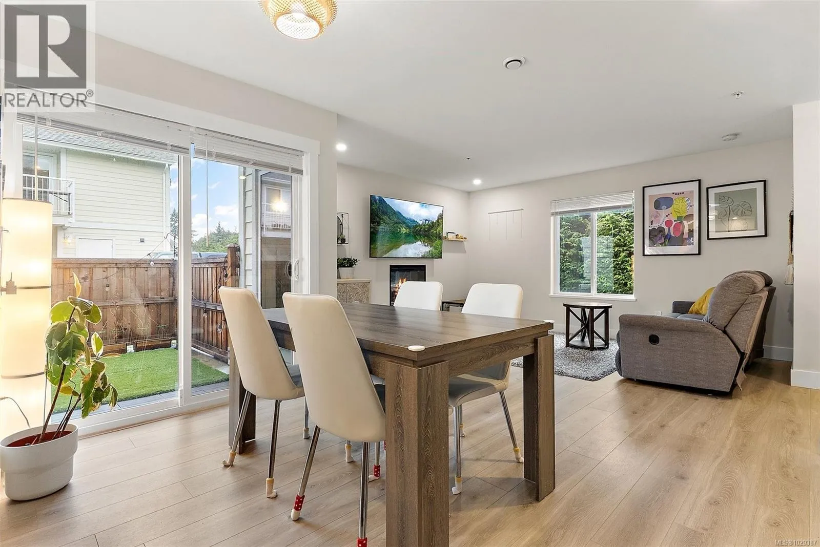 Experience modern comfort in this thoughtfully designed 2-bedroom, 2.5-bath corner townhouse in the heart of Sooke. Generous living spaces and a functional layout are enhanced by contemporary finishes, including solid surface countertops throughout. The main level showcases an open-concept kitchen, dining, and living area with a cozy fireplace and expansive windows that fill the home with natural light. Step outside