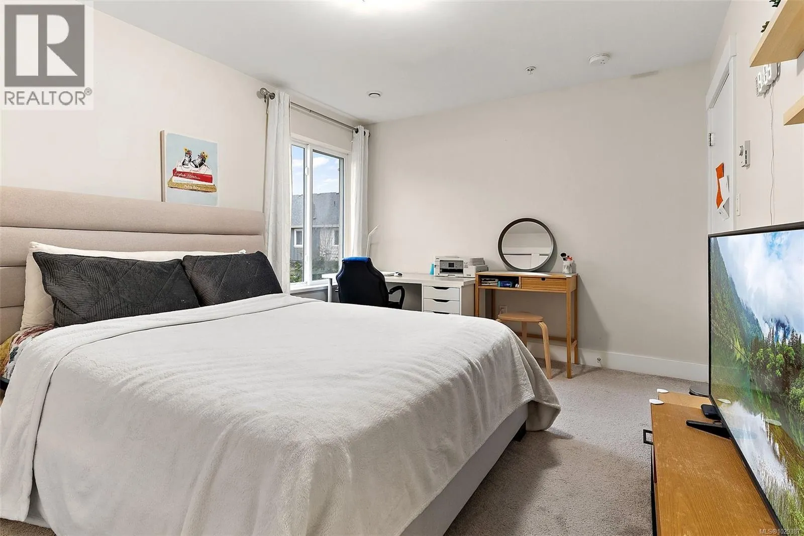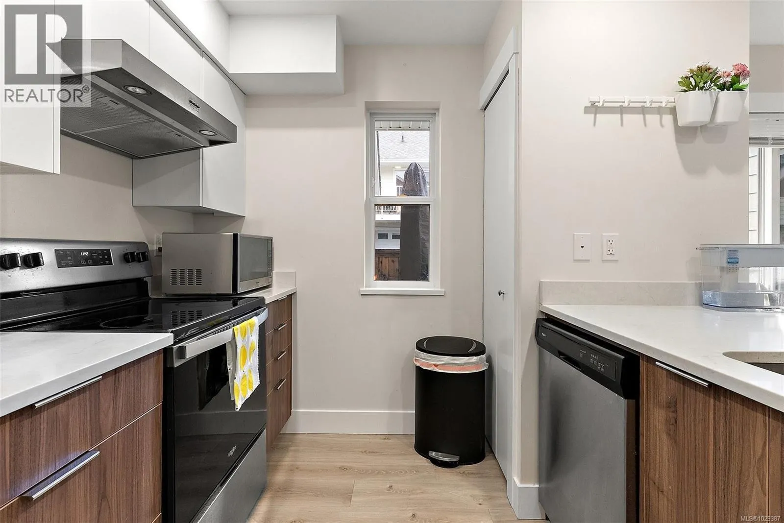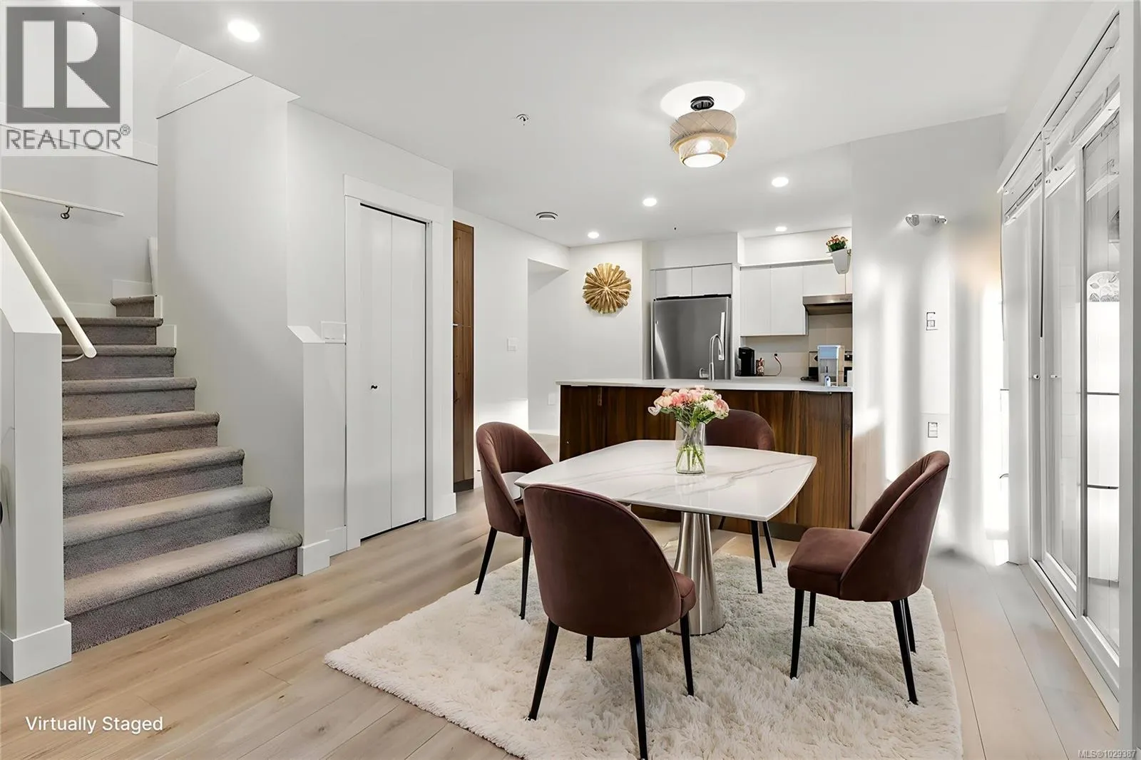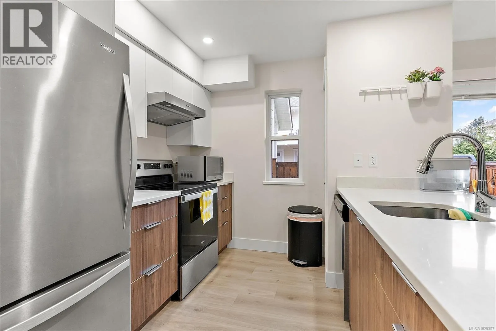 Experience modern comfort in this thoughtfully designed 2-bedroom, 2.5-bath corner townhouse in the heart of Sooke. Generous living spaces and a functional layout are enhanced by contemporary finishes, including solid surface countertops throughout. The main level showcases an open-concept kitchen, dining, and living area with a cozy fireplace and expansive windows that fill the home with natural light. Step outside