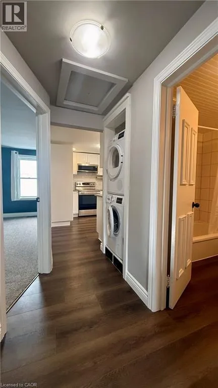 Spacious upper-level unit offering two generously sized bedrooms and a full 4-piece bathroom. This well designed layout flows into a beautiful walk-through kitchen featuring quartz countertops, double stainless steel sinks, a ceramic backsplash, and brand-new stainless appliances. At the rear of the home, the expansive living and dining area is filled with natural light, creating a bright and inviting atmosphere.
