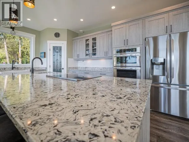 Incredible 2 acre waterfront property with panoramic ocean views- minutes from Powel River centre. Level entry 5bed 4bath 3815sq ft home with open concept design-high ceilings & expansive windows fill the space with natural light. Chef inspired kitchen includes s.s. built-in appliances, quartz countertops and large island seating four. The living room offers a cozy fireplace and opens to a