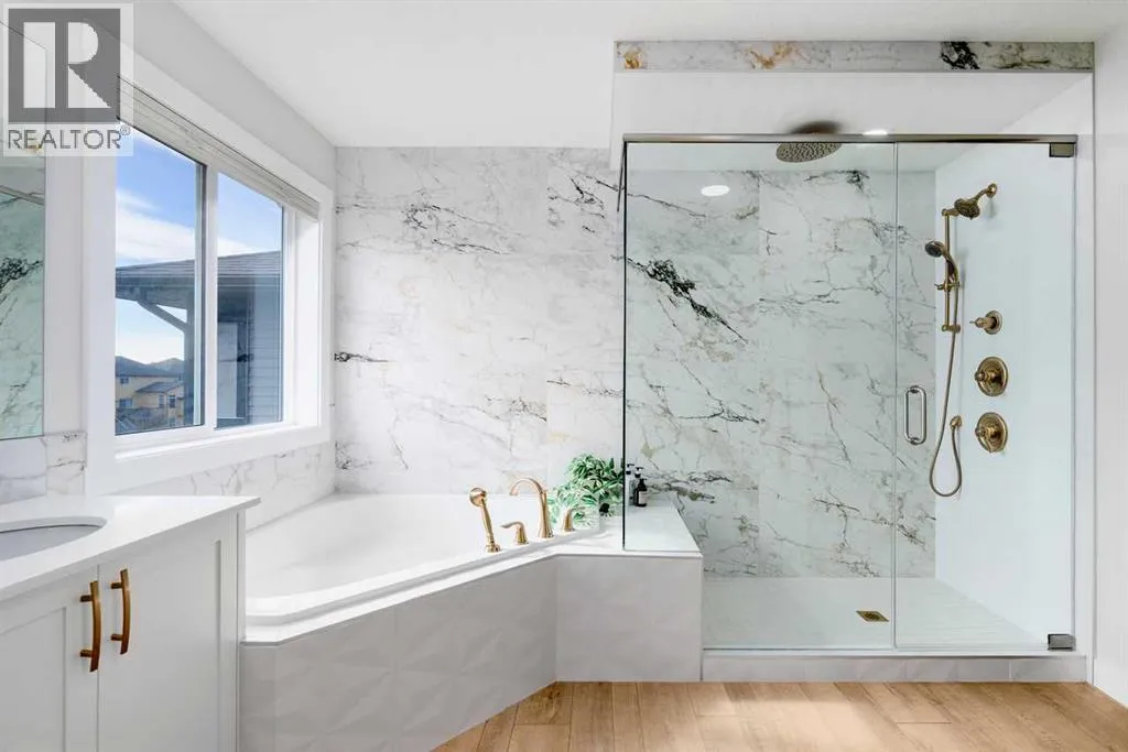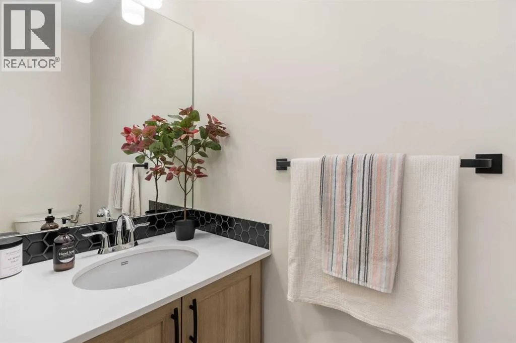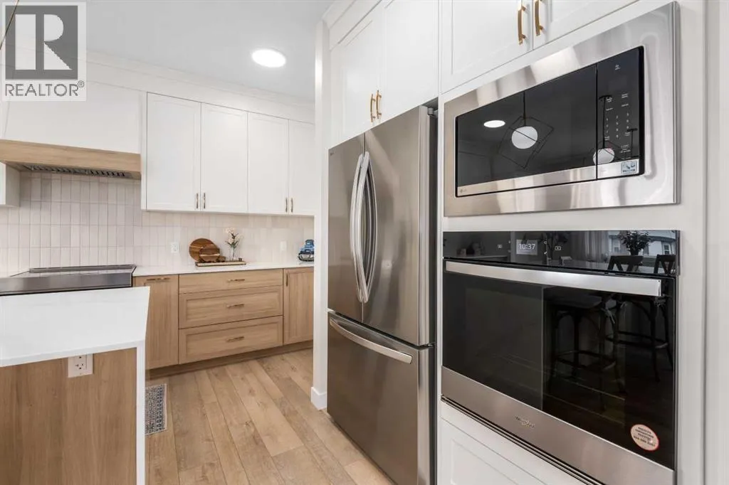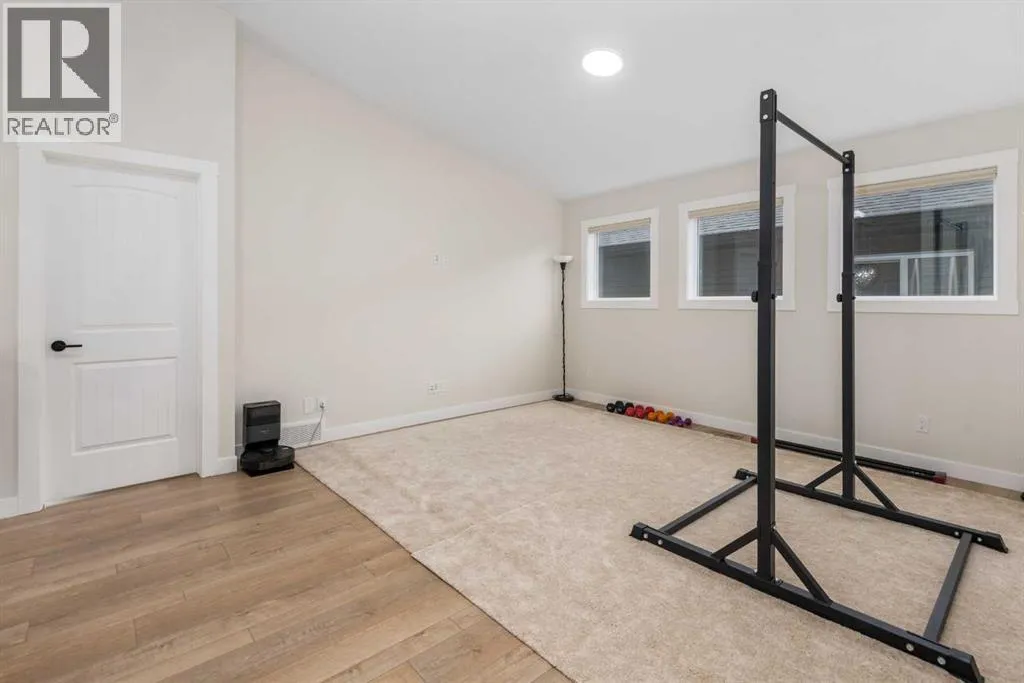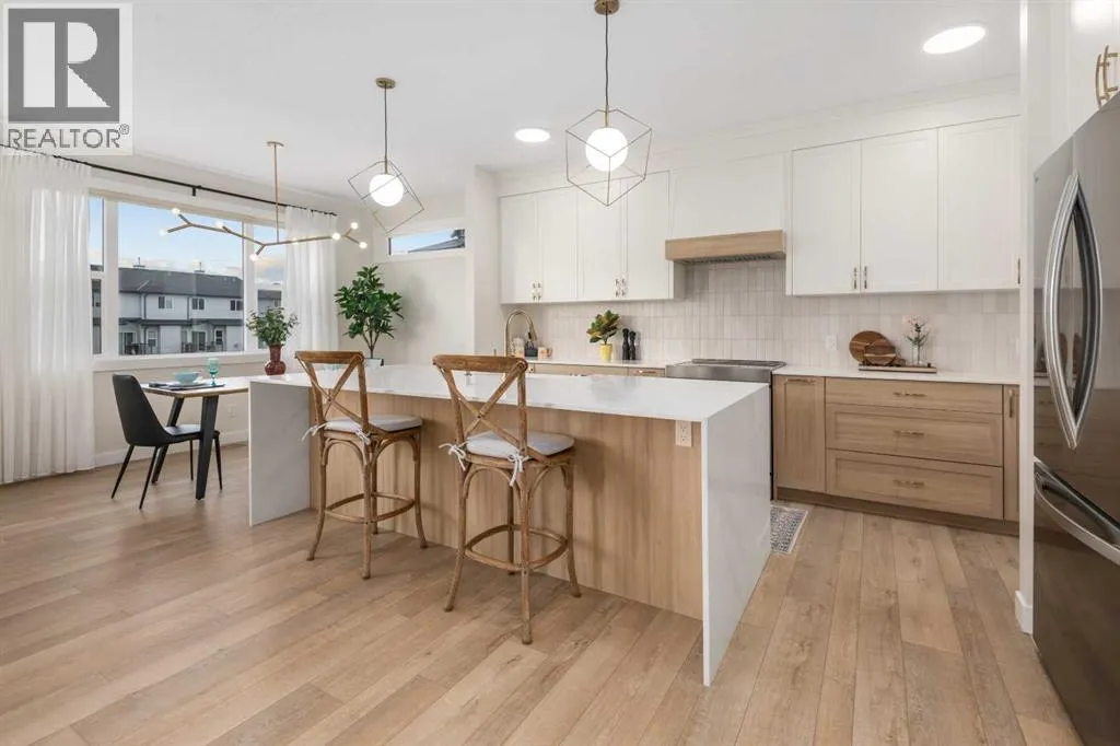 to Sobeys, Co-op, nearby shopping & everyday amenities, along with convenient routes to Nose Creek Park, the QE2 & the rest of Airdrie & Calgary. Built in 2024 & barely lived in, this home offers the feel of brand new construction without the wait, with the added benefit of completed landscaping, fencing & window coverings, along with upgraded paint throughout & central air conditioning for year-round comfort. The thoughtfully designed layout features 3 bedrooms up, a spacious bonus room & a fully developed walkout basement with an additional bedroom. The main floor is both elegant & functional with a stunning kitchen showcasing full height cabinetry, built-in wall oven & microwave, induction stove, sleek finishes & a striking waterfall quartz island that anchors the space. The kitchen overlooks the dining area & family room where an electric fireplace with mantle creates a warm focal point, while the dining area opens onto a back deck complete with a gas line & water tap, perfect for outdoor living. A standout feature is the incredible pantry complete with a second dishwasher & sink, offering exceptional prep space, storage & convenience. Added comfort & efficiency come from honeycomb blinds, including 12 automated blinds that enhance both privacy & ease of living. Upstairs the spacious primary retreat overlooks the greenspace & offers a large walk-in closet plus a spa-inspired ensuite with custom wall tile, gorgeous shower feature, double sinks & a relaxing soaker tub. 2 additional well-sized bedrooms with walk in closets, a bright bonus room & an exceptional laundry room with sink, cabinetry & linen storage complete the upper level. The fully finished walkout basement features 9 ft ceilings & adds even more living space with a large recreation area, bedroom, full 3-piece bathroom & additional storage in the mechanical room. The attached 20×22 garage offers tall ceilings that may accommodate a lift, providing excellent potential for car enthusiasts or additional storage. Step outside to the sunny south facing yard where the natural creek setting, pathway & greenspace create a peaceful backdrop that is rarely available. This is a home that blends thoughtful upgrades, beautiful design & an unbeatable location into one truly special property. (id:62650)
