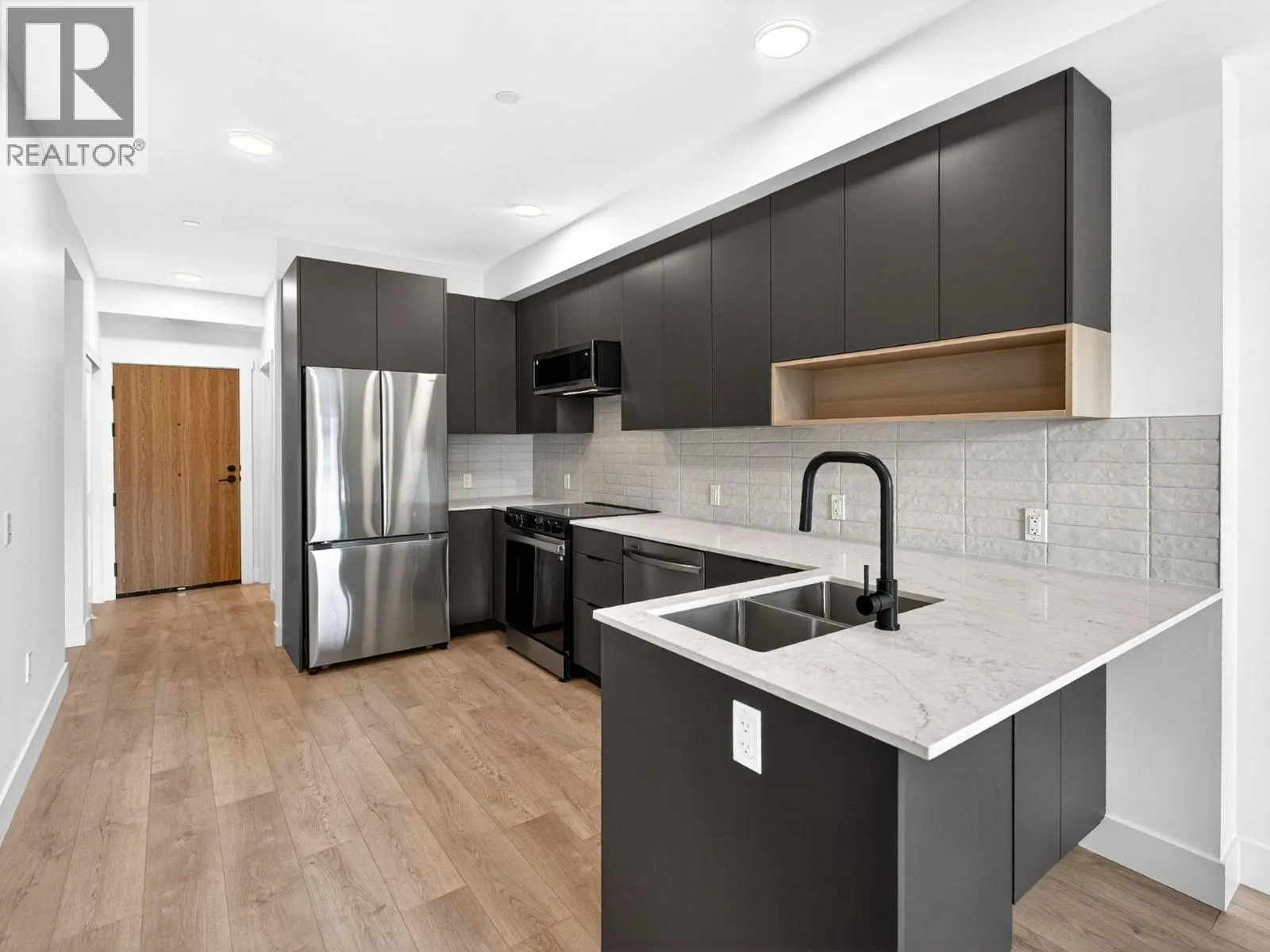 Experience modern urban living in this brand new 1-bedroom, 2-bathroom condo in Nolita, located in the heart of downtown Kelowna. This thoughtfully designed home features an open-concept layout with a versatile flex space, perfect for a home office or guest area. The stunning kitchen showcases contemporary finishes and quality craftsmanship, ideal for both everyday living and entertaining. Primary bedroom features