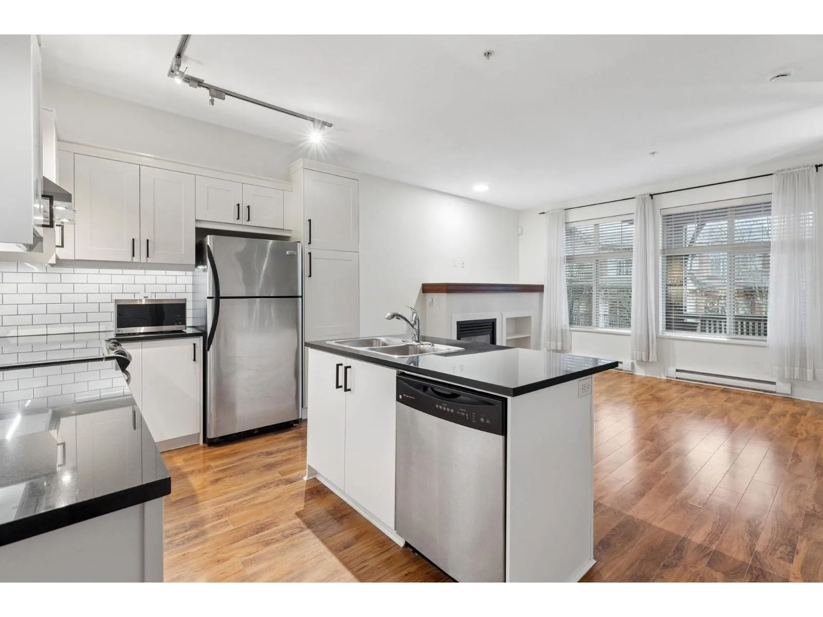 Welcome to Sunset Grove. This updated 2-bedroom, 2-bath townhome in Clayton Heights offers comfortable, easy living with a smart layout, two spacious balconies, and a warm living room fireplace framed by large windows that fill the space with natural light. The kitchen has been refreshed with updated cabinets, backsplash and under-cabinet lighting, while the ensuite features stylish tile, new fixtures