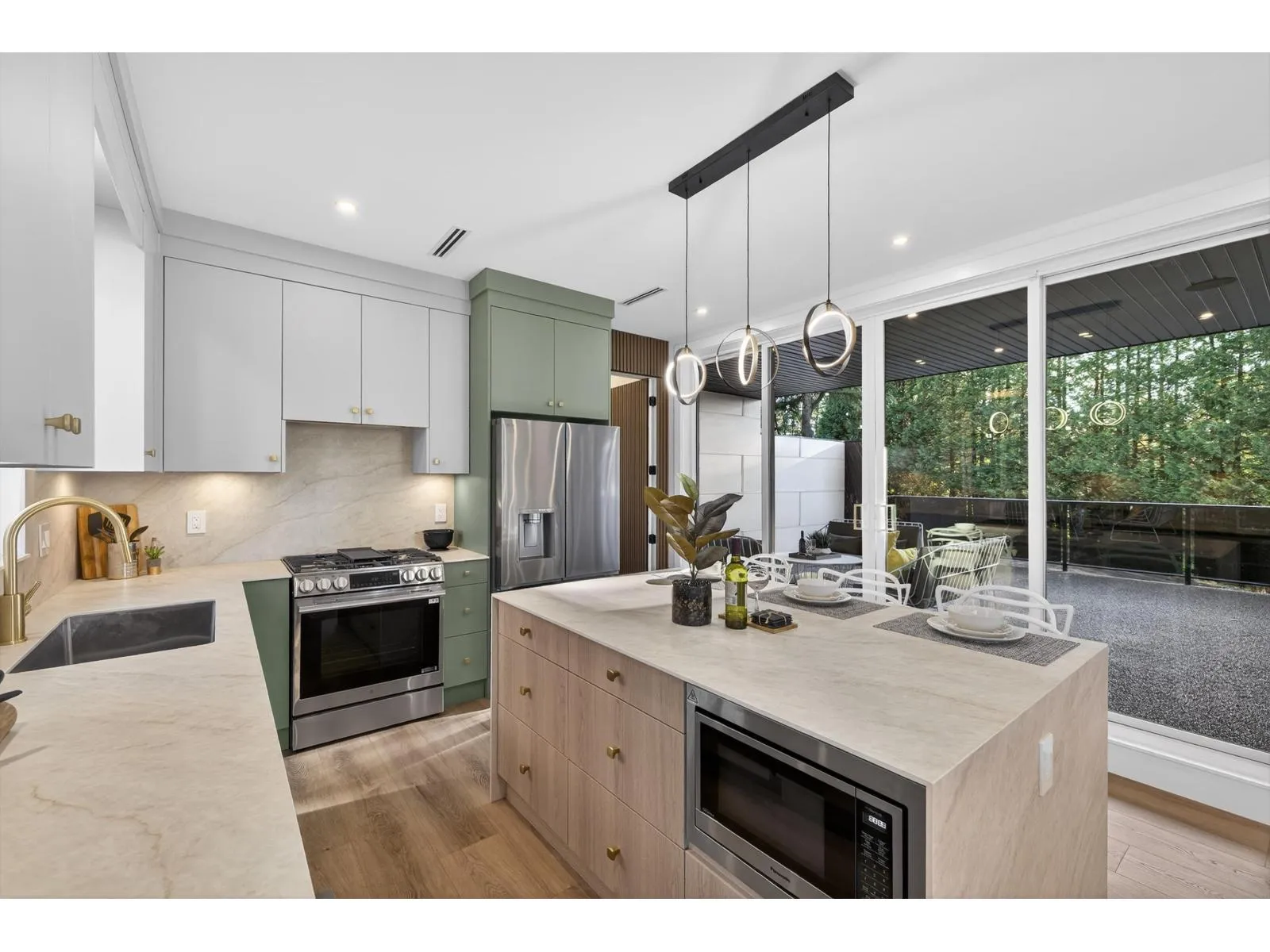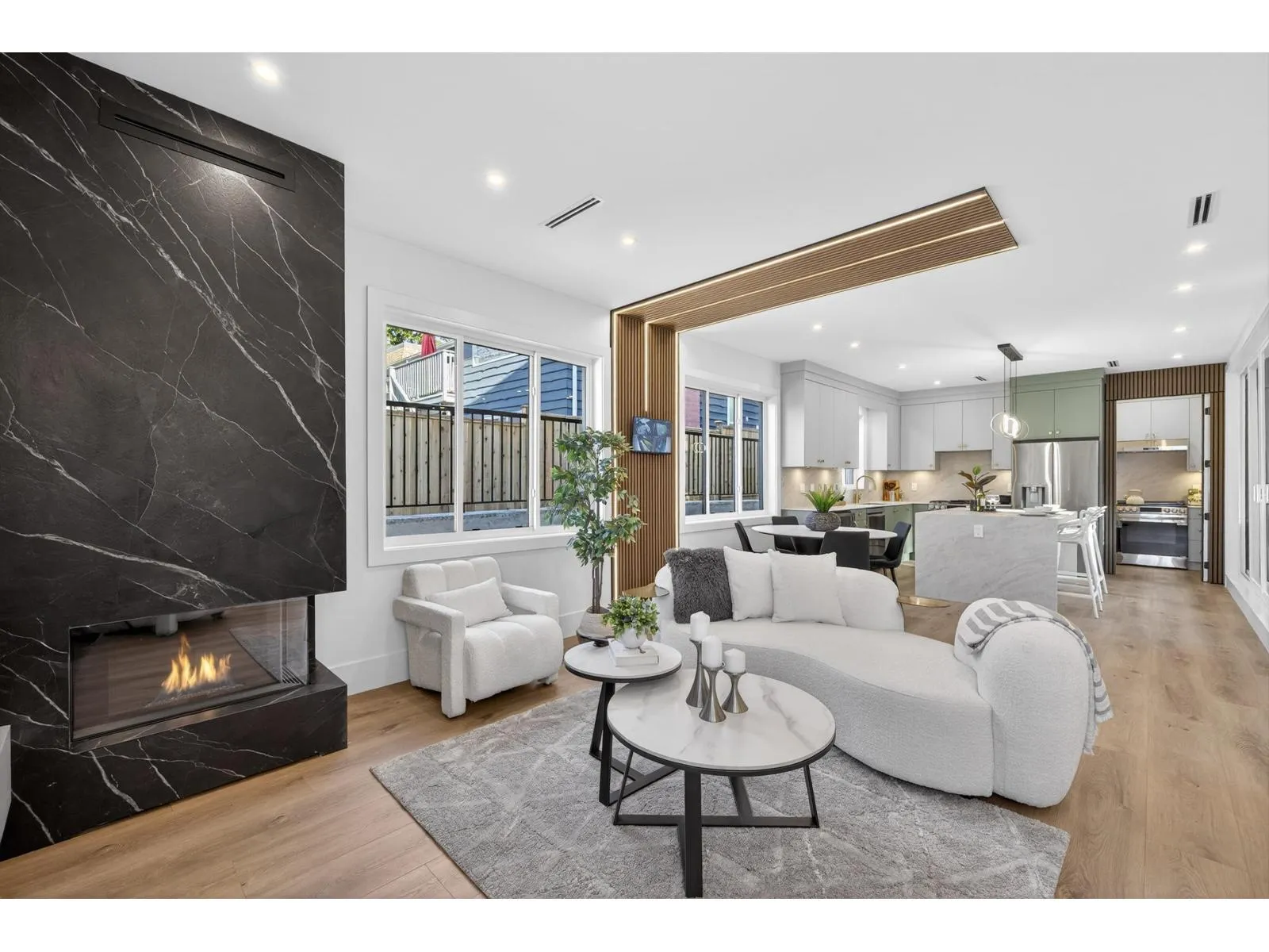 Brand-new modern West Coast 1/2 duplex on a prime corner lot w/ unobstructed Burns Bog views, 3,022 sq.ft. per side & 390 sq. ft. of covered decks on 9,000 sq.ft. lot (4,500 sq. ft. per unit). Features include a side-by-side double garage & 53-ft driveway w/ parking for up to 8 vehicles. Open-concept main floor,floor-to-ceiling windows & designer kitchen w/